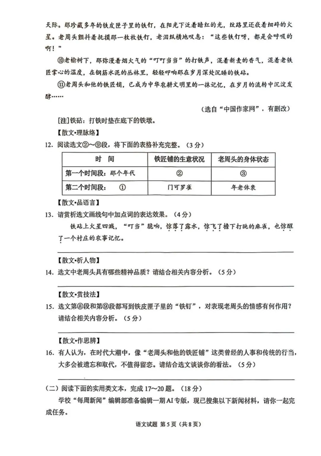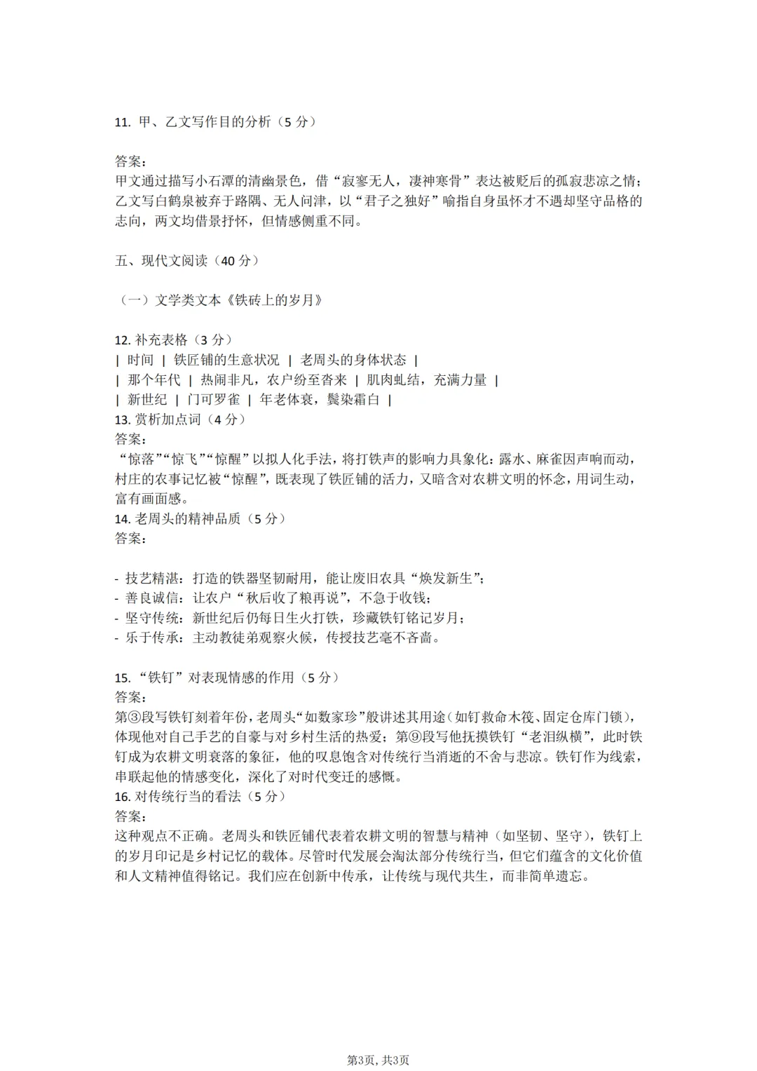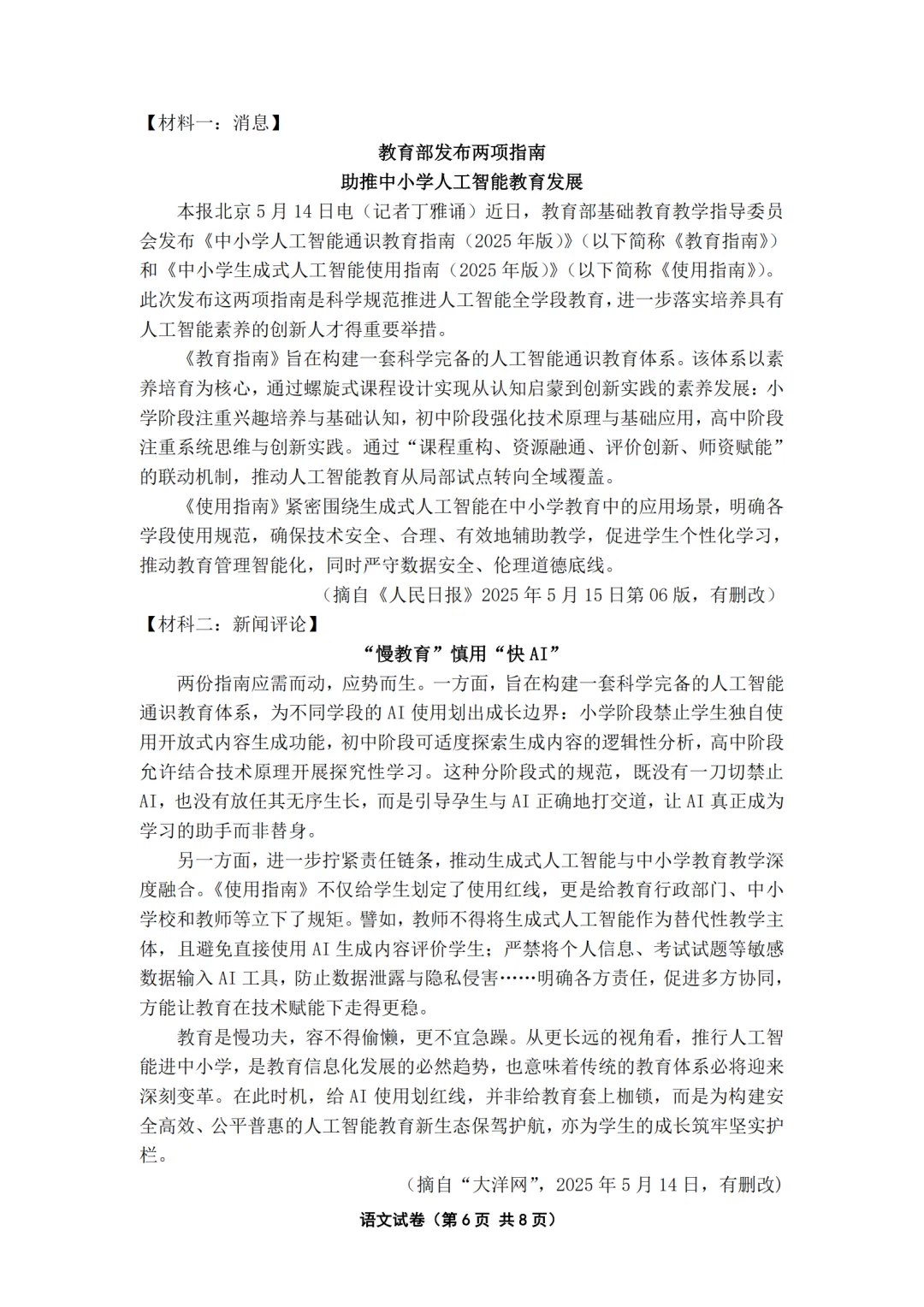 2026年上海高考语文二模浦东新区试卷(附答案)