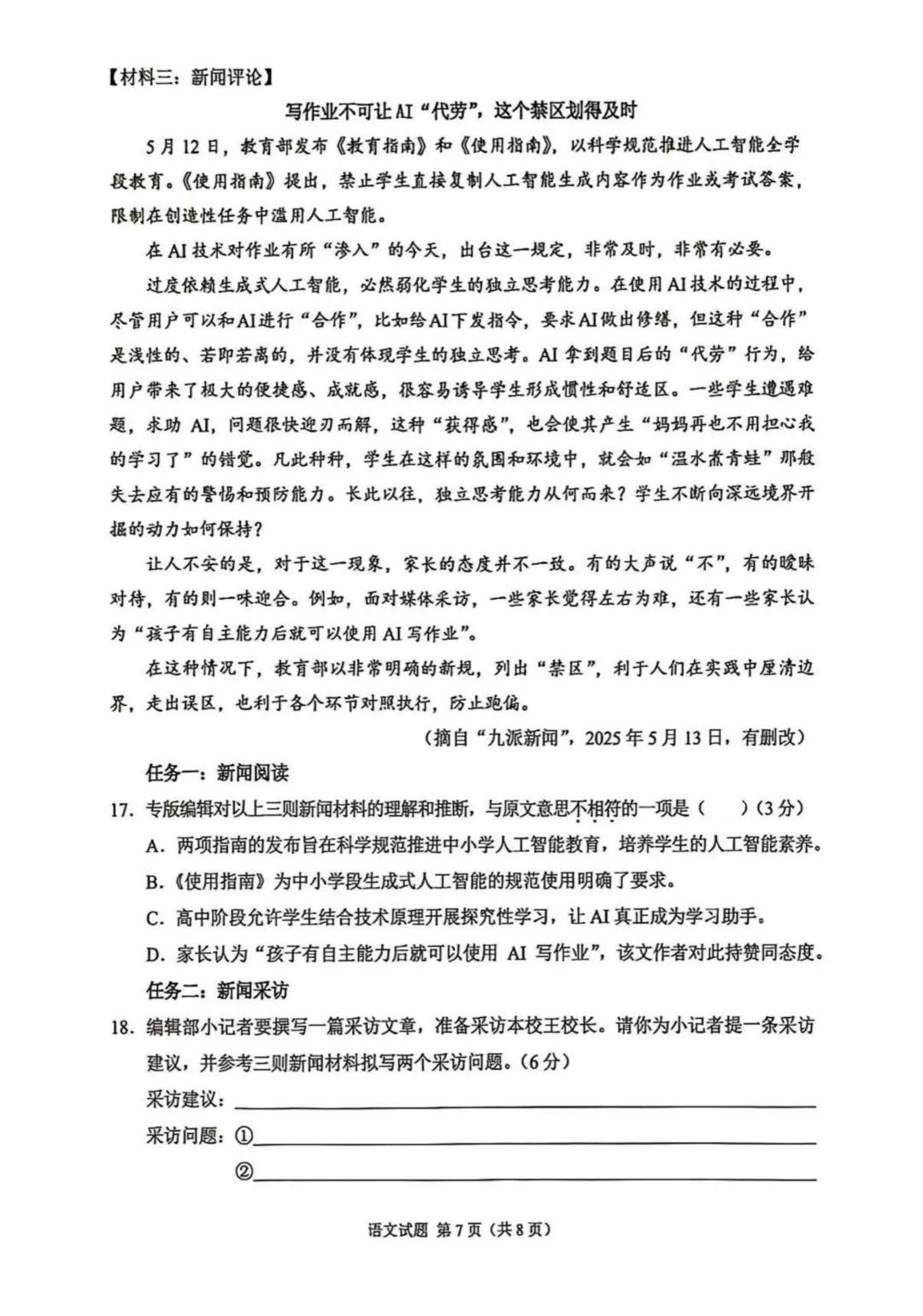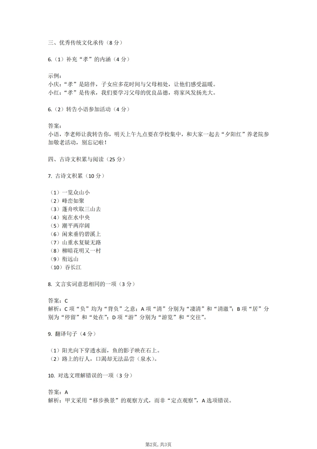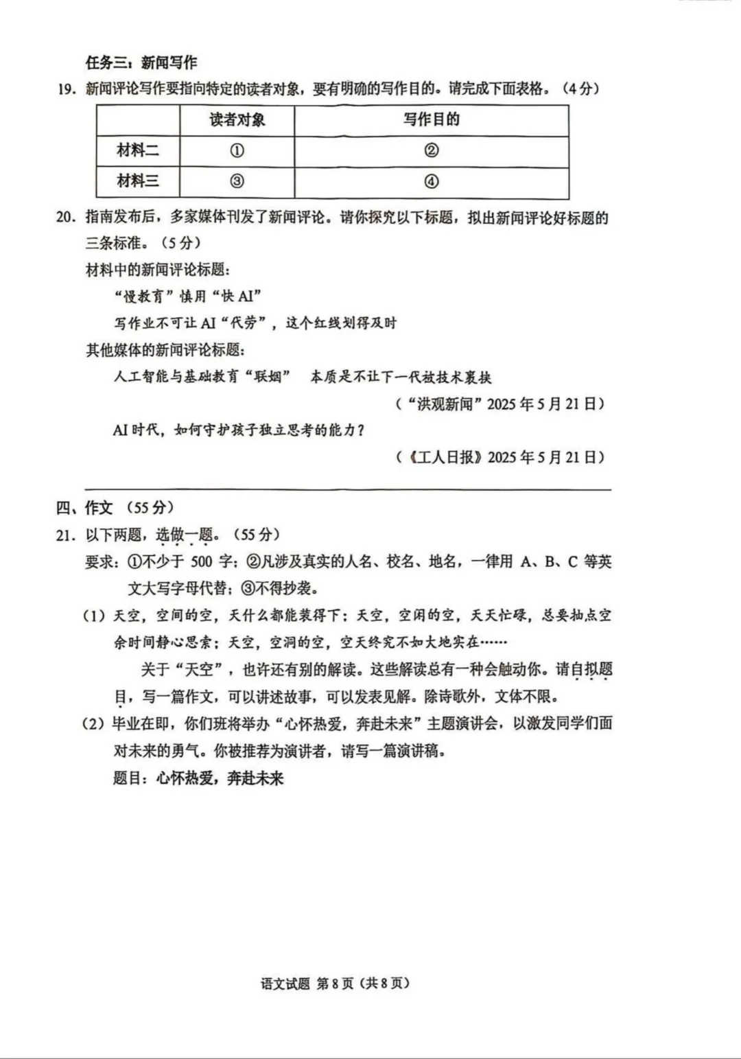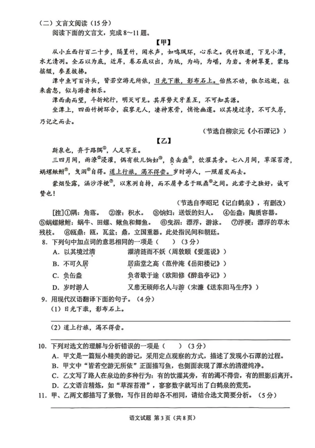 2026年上海高考语文二模浦东新区试卷(附答案)