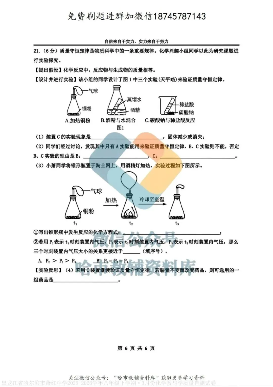 2026哈125中八下化学3月知识竞赛试卷及答案