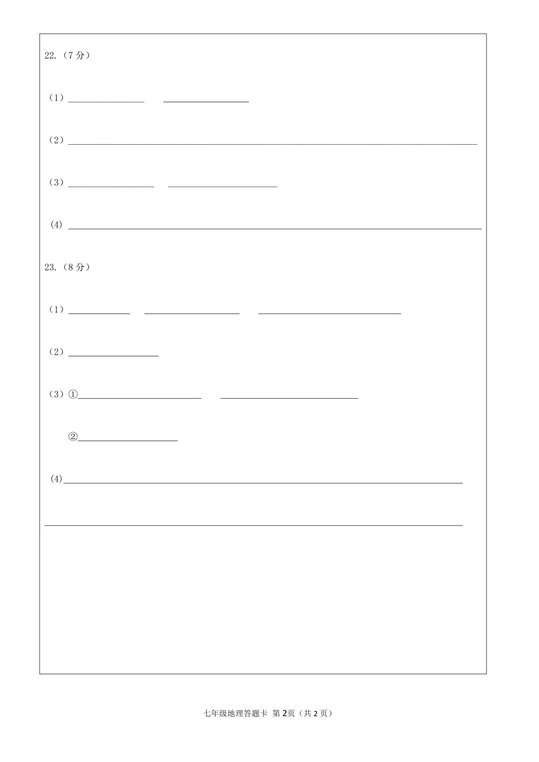 七下地理4月月考试卷(试卷+答案+答题卡)