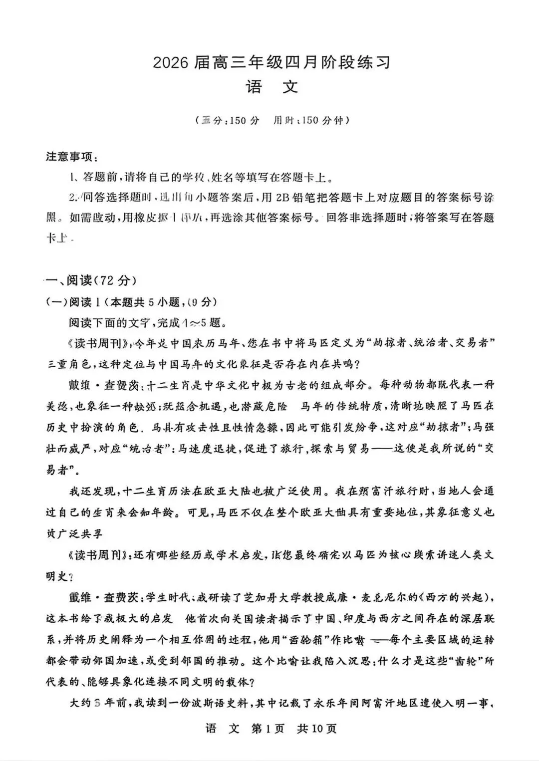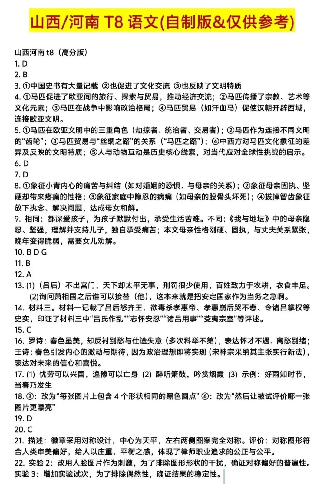 考试名称:山西省、河南省高三八省T8联考2026届高三年级四月阶段练习