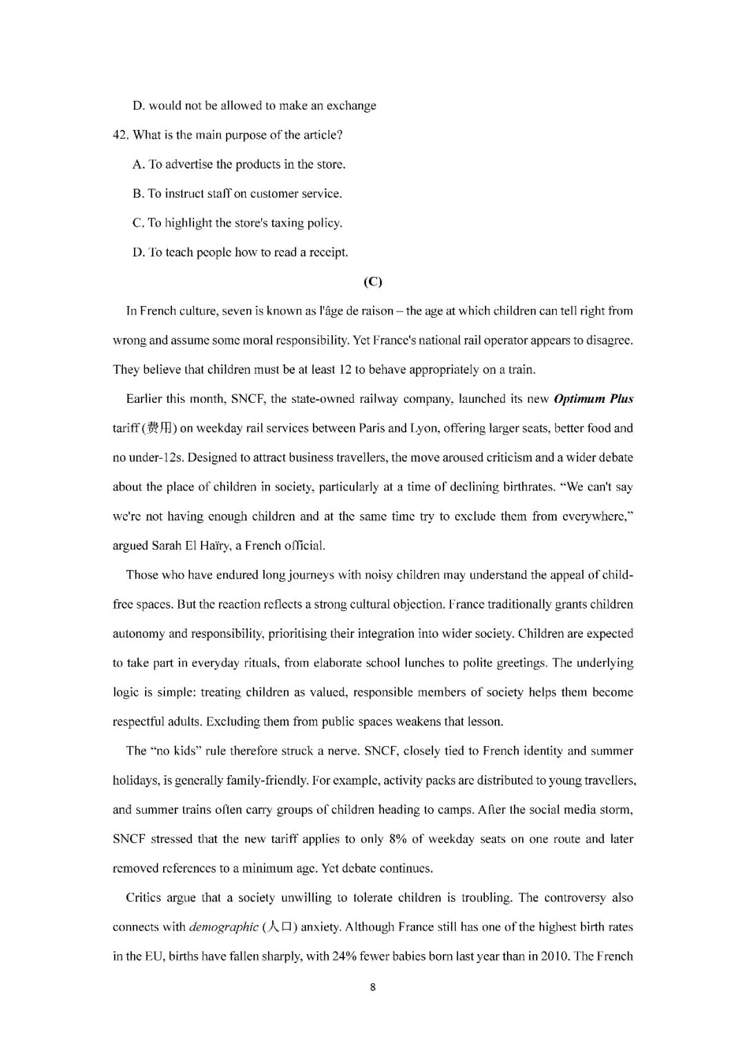 >2026届上海市奉贤区高三二模英语试卷(含答案)