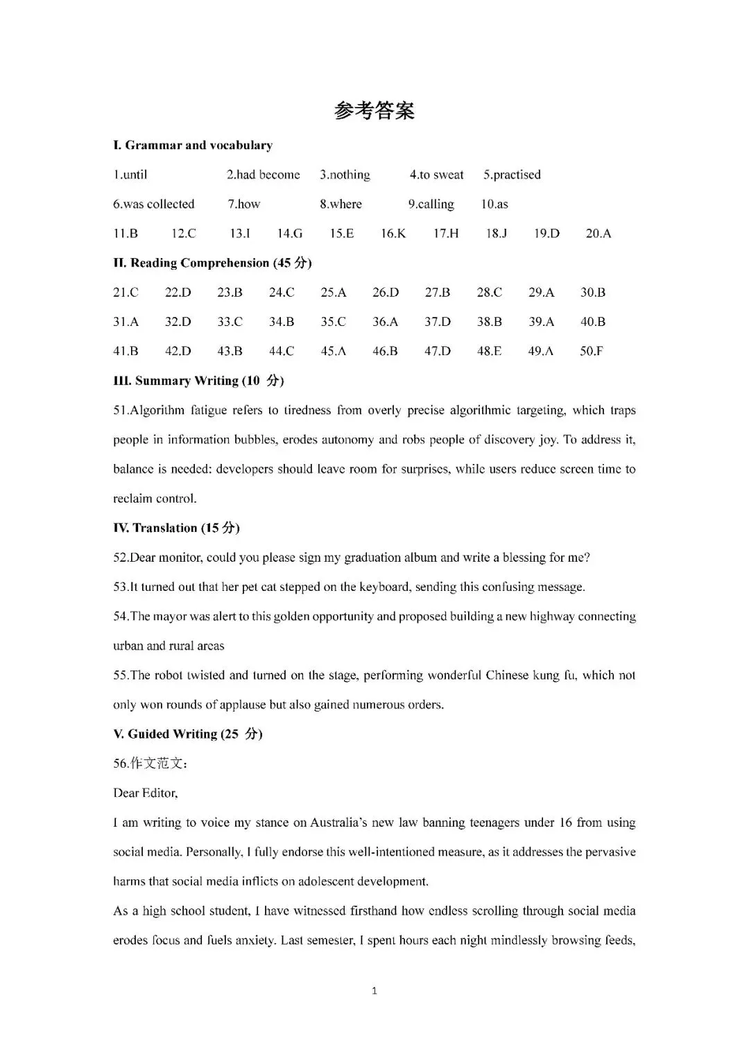 2026届上海市奉贤区高三二模英语试卷(含答案)