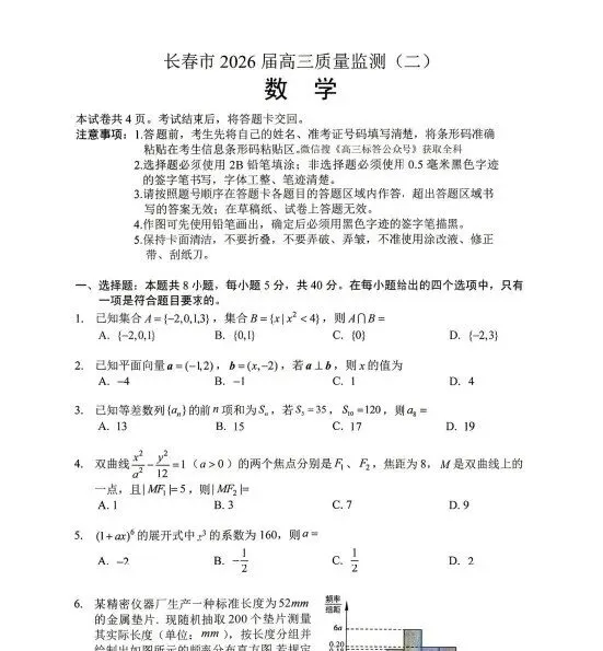 【对答案】长春二模考试真题及答案