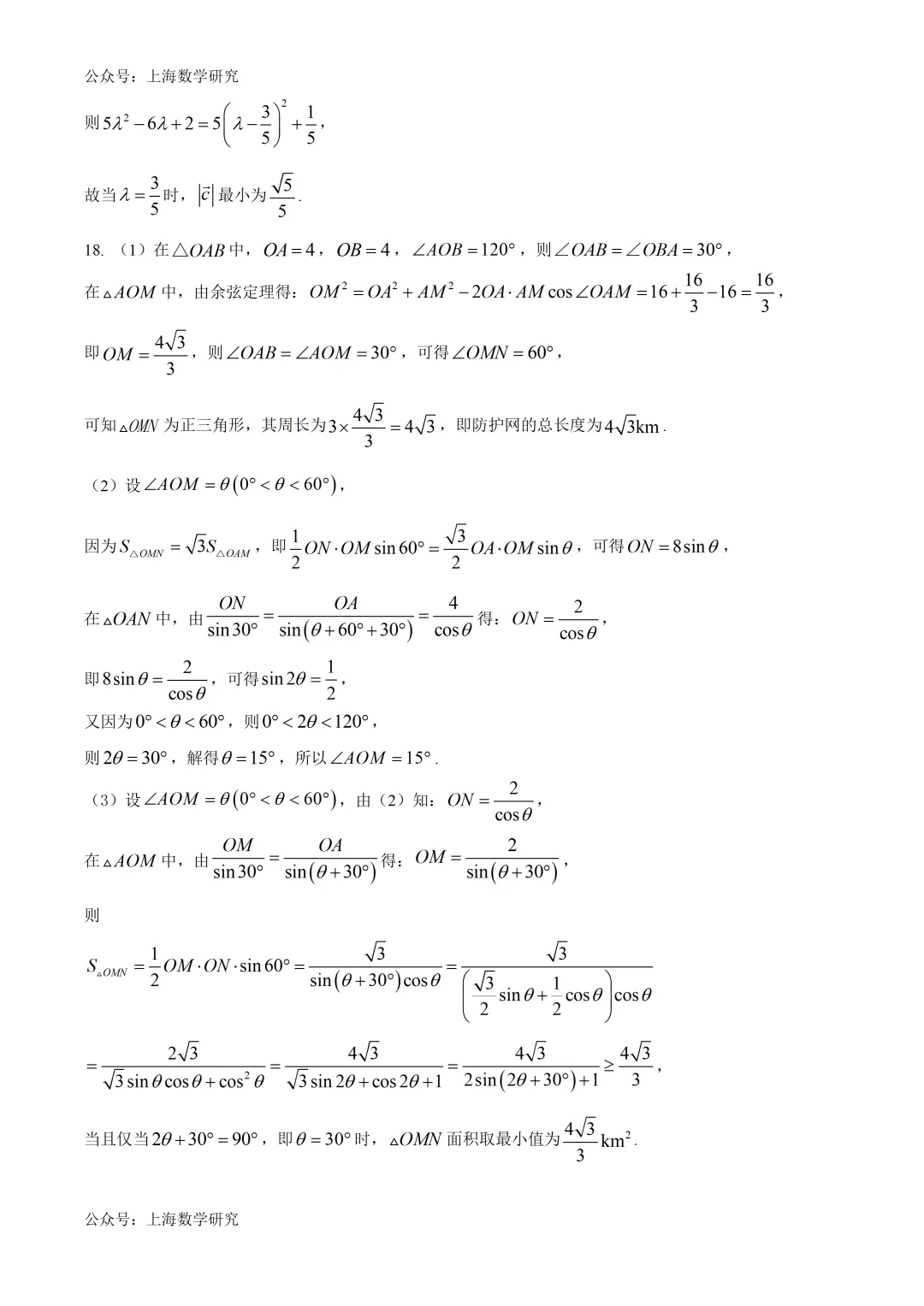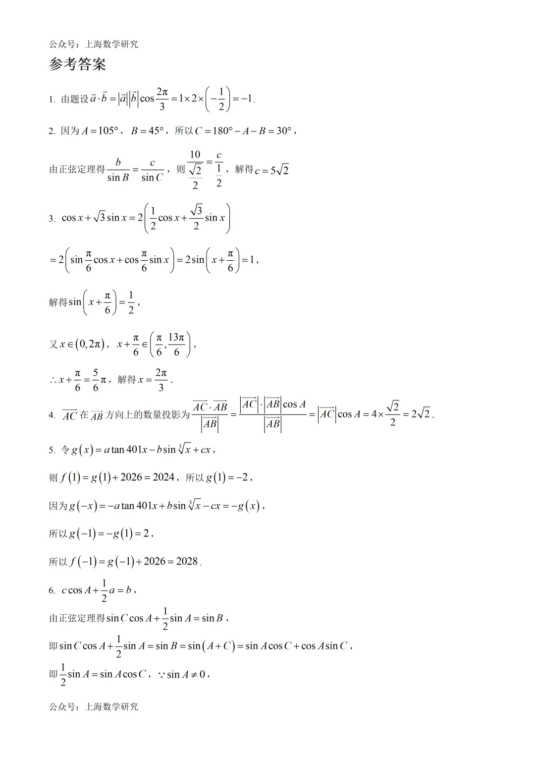 >上海市复旦附中高一数学练习试卷及答案(2026.4)