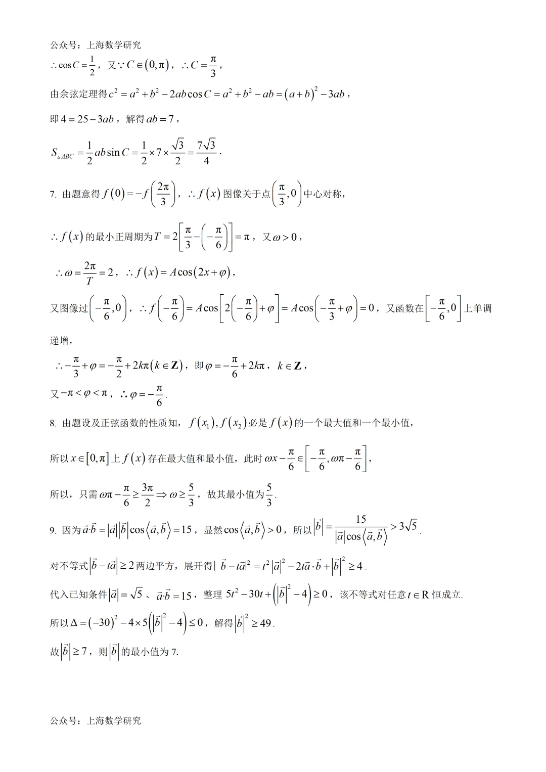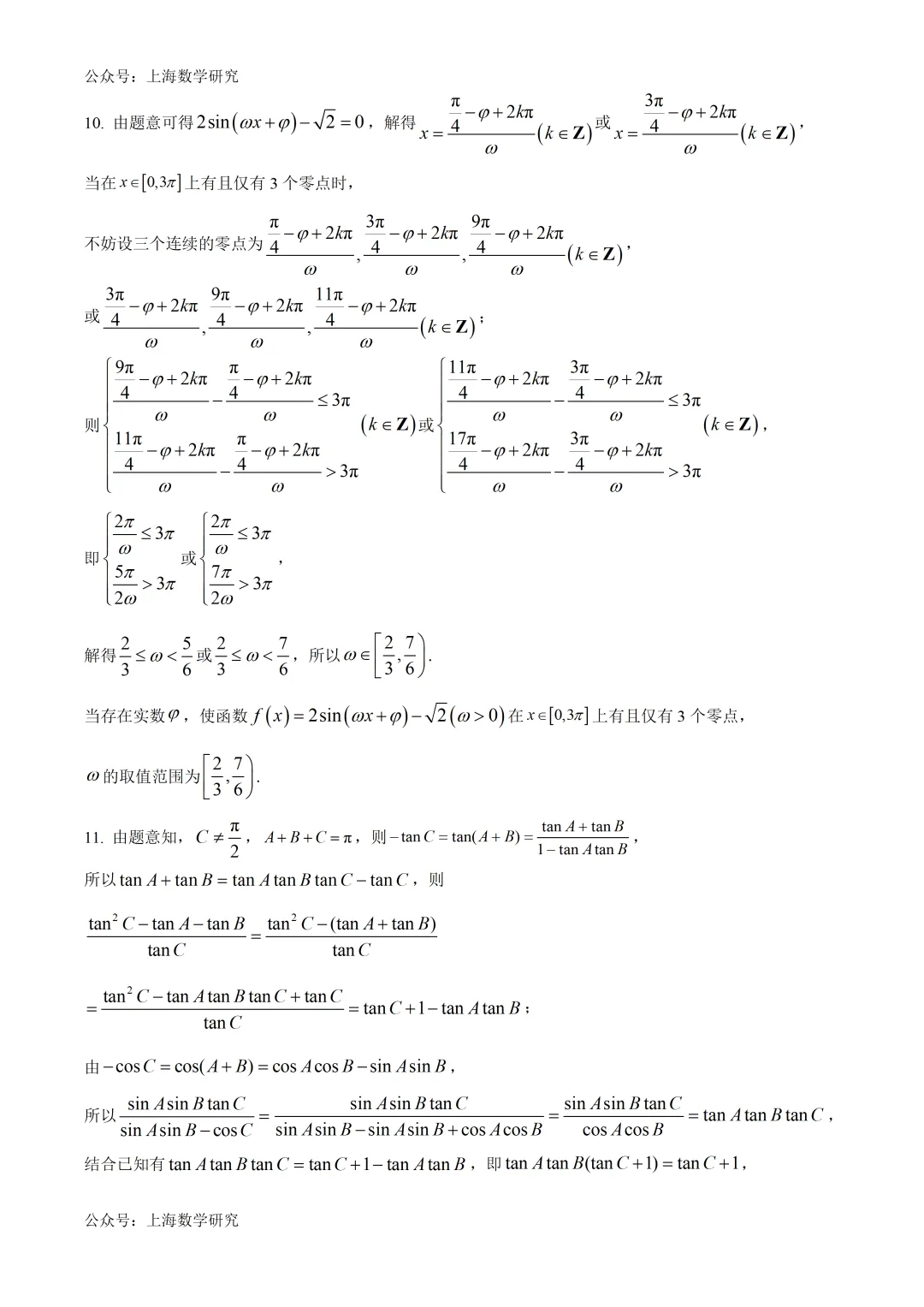 2026届上海市嘉定区高三二模数学试卷(含答案)