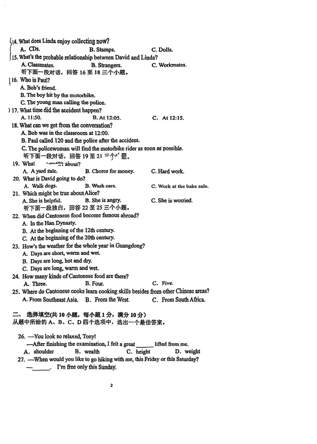 重磅推出:2014-2025年武汉市中考英语真题(含听力、答案)