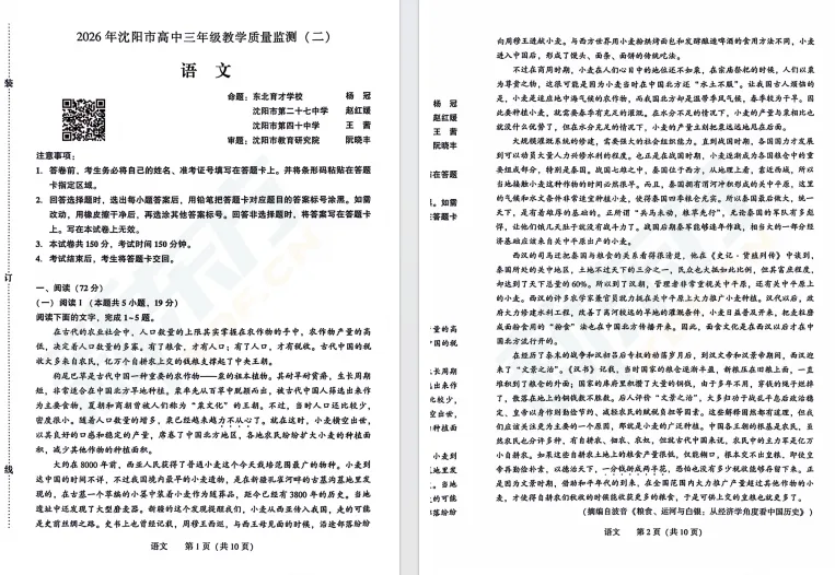 二模试卷 | 沈阳高三二模+东北三省三校二模,2025全科试卷含答案!