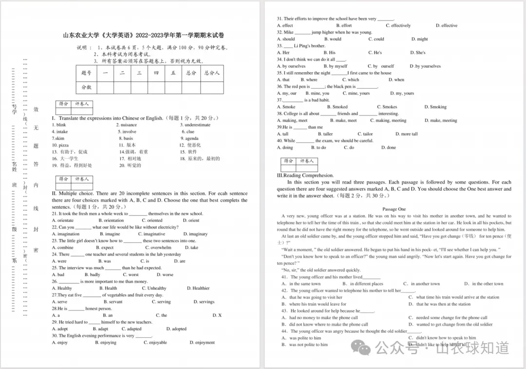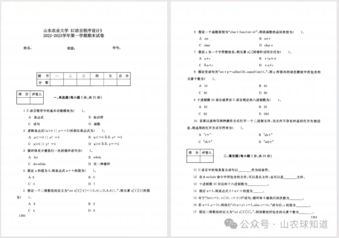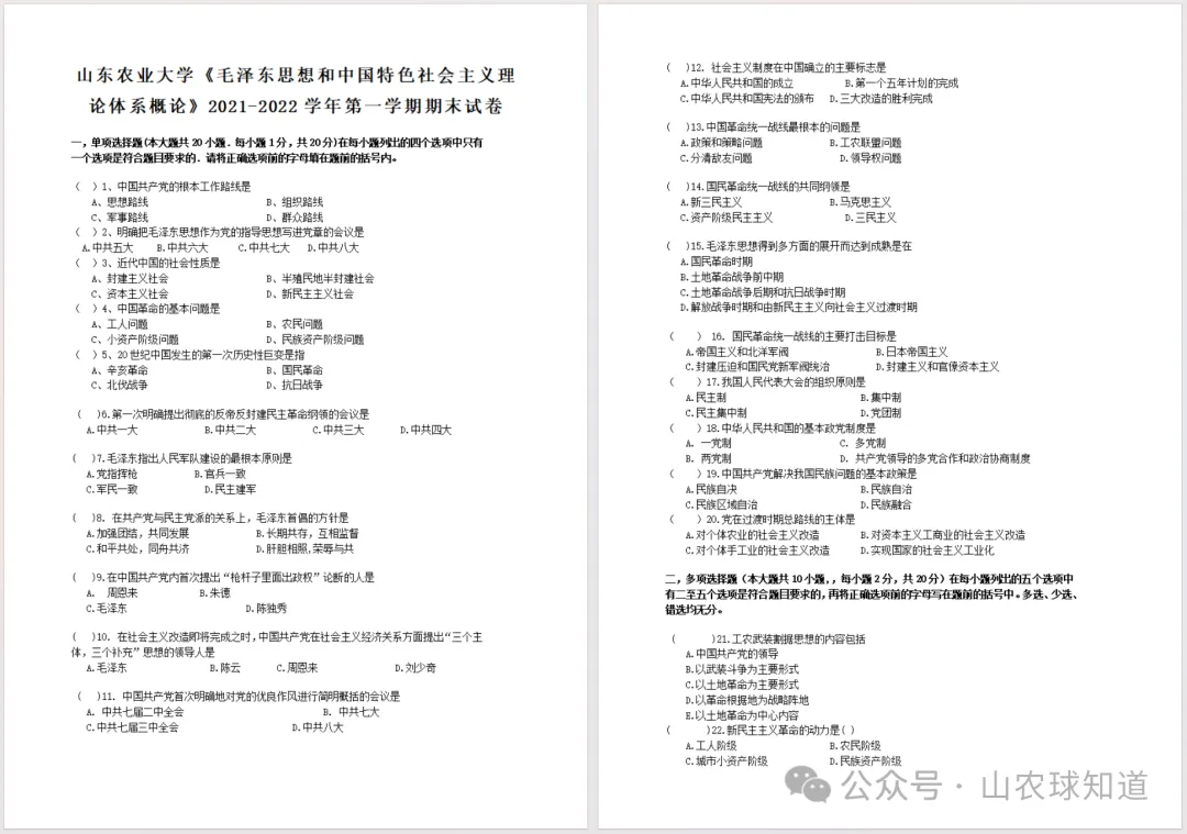 山农历年真题试卷来啦!(再更新版+互助与分享计划)