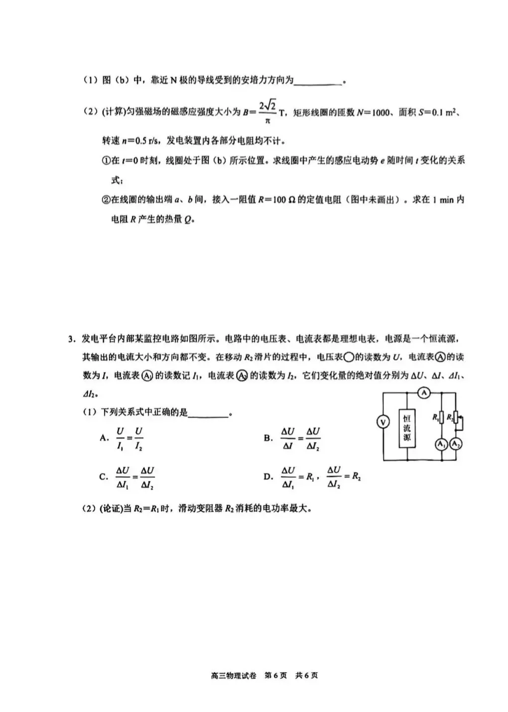2026上海市黄浦区高三二模物理试卷