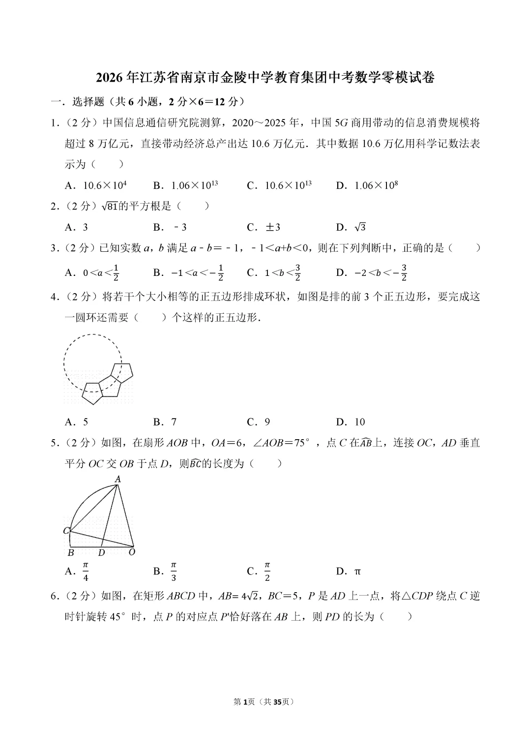 >南京金中教育集团零模数学试卷