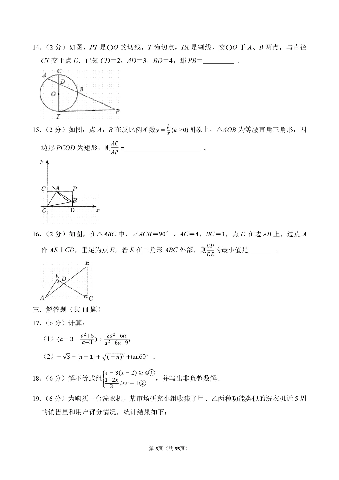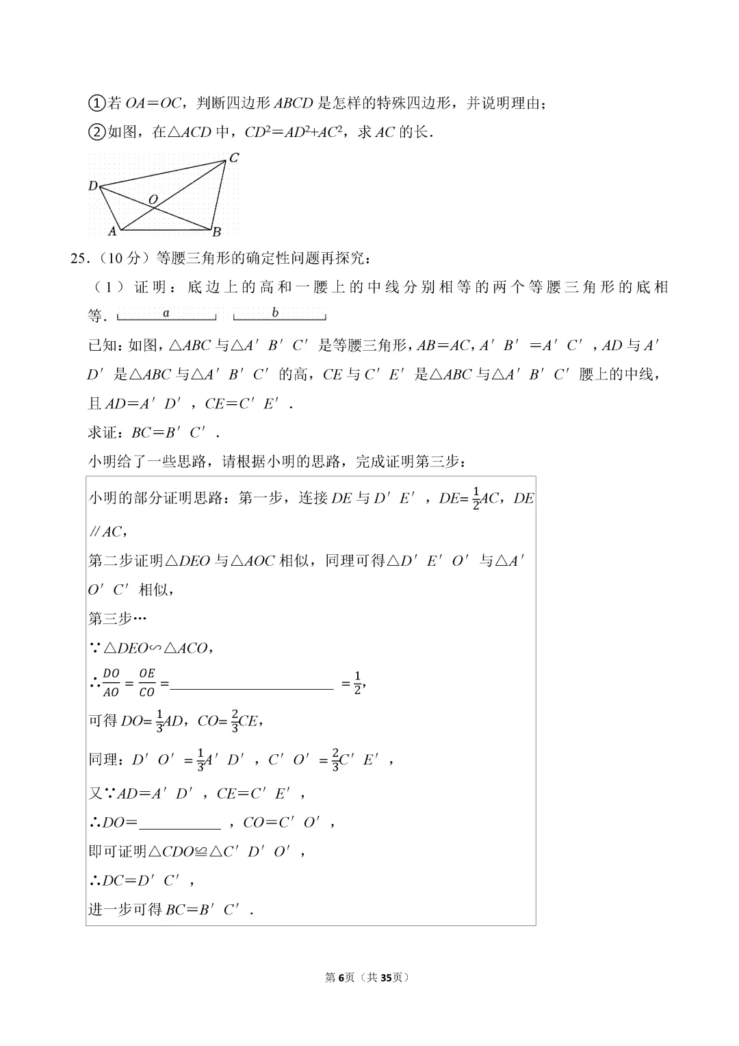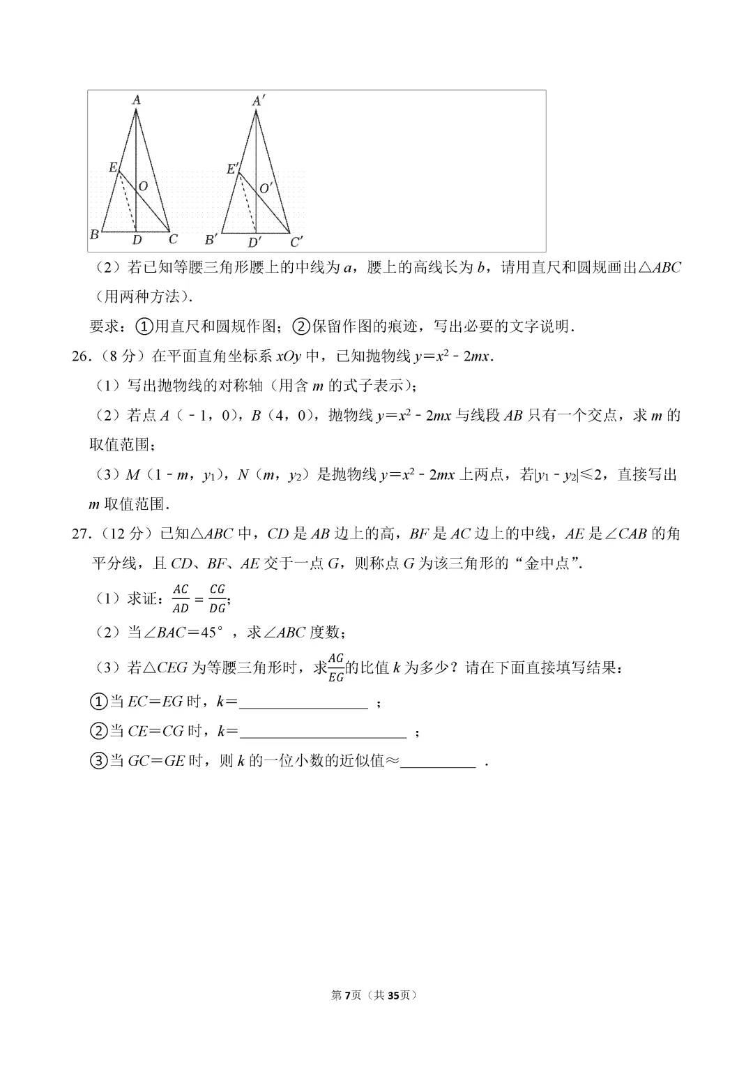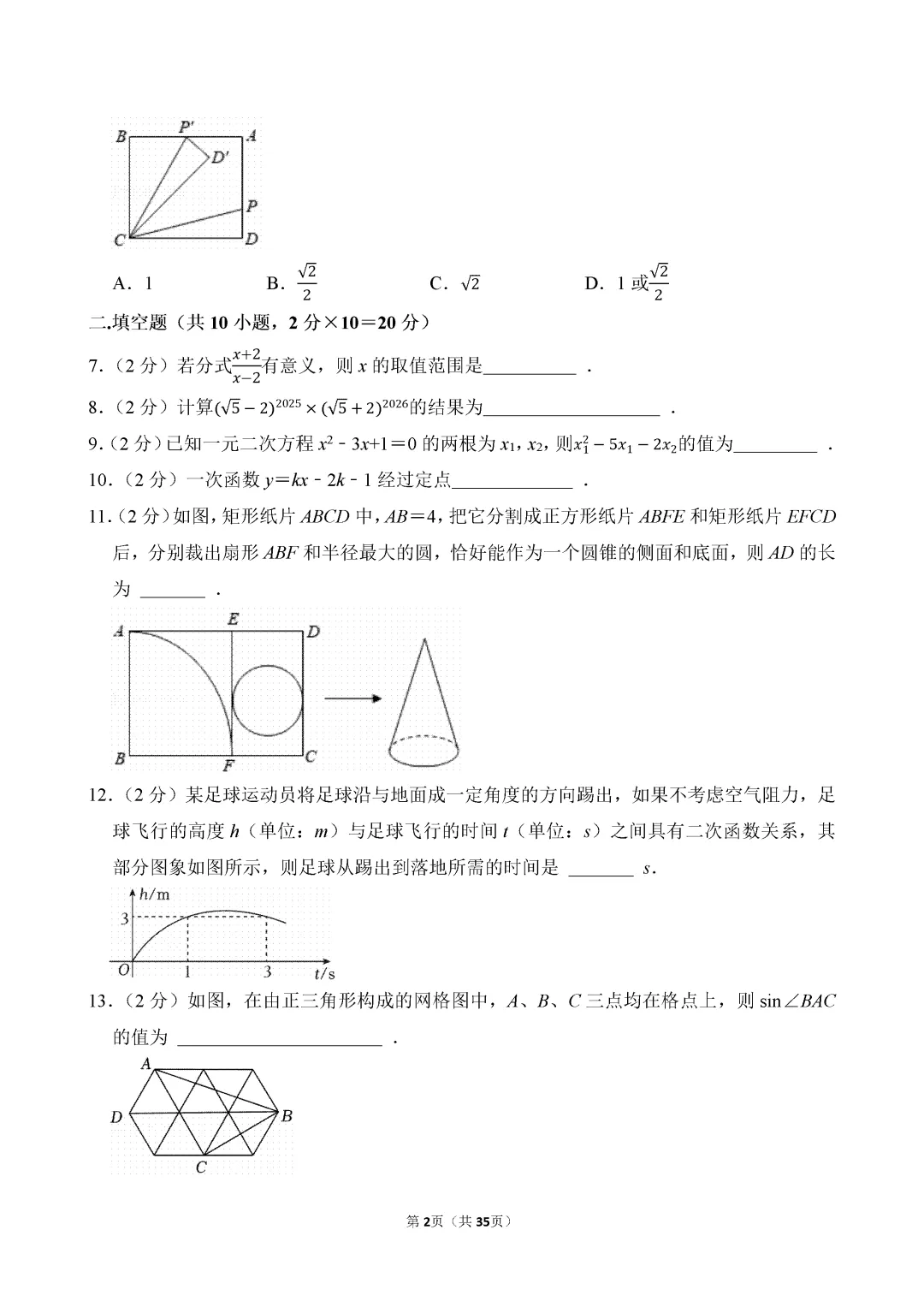 试卷原卷如下