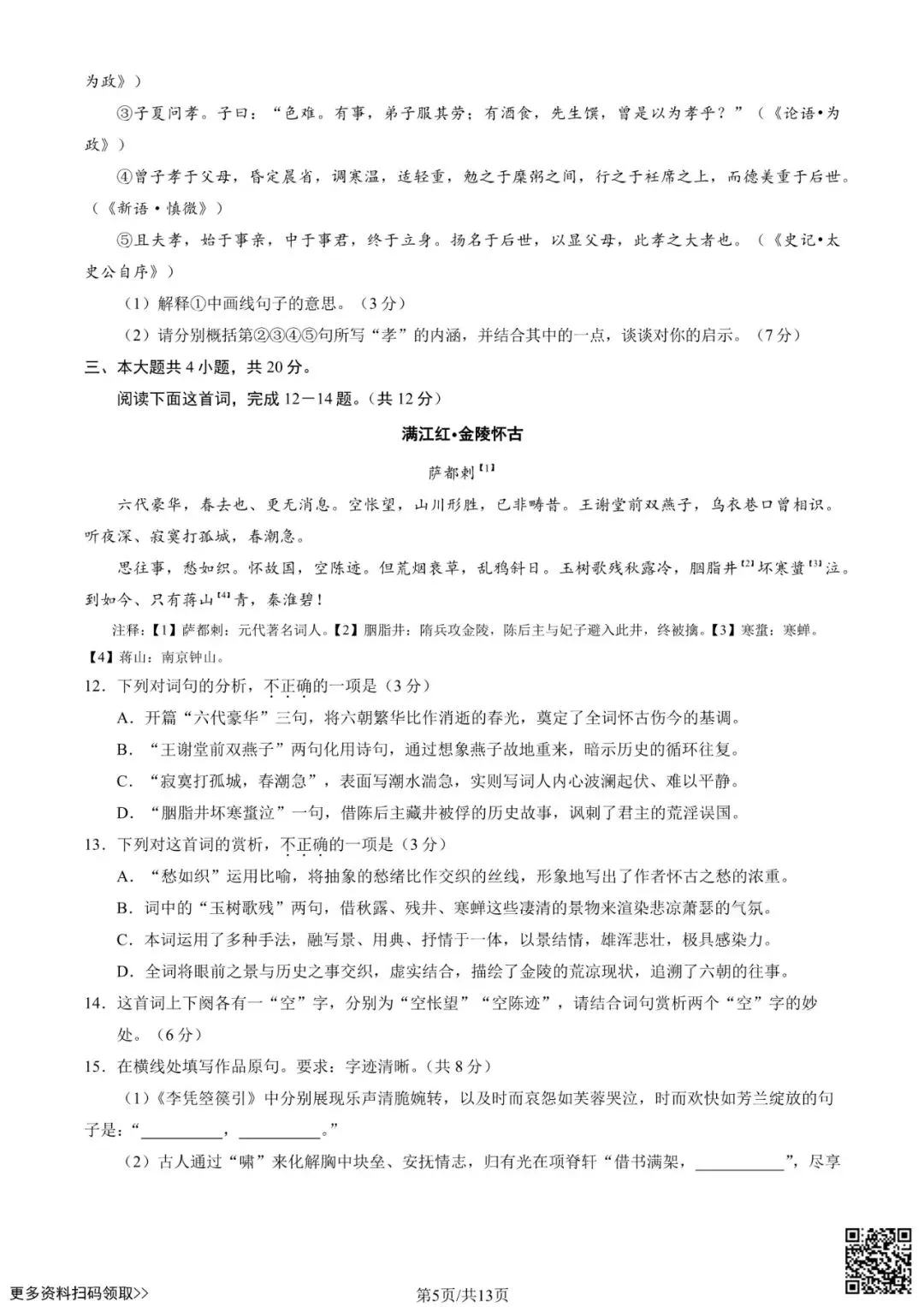 2026北京昌平高三一模语文试卷(含答案)