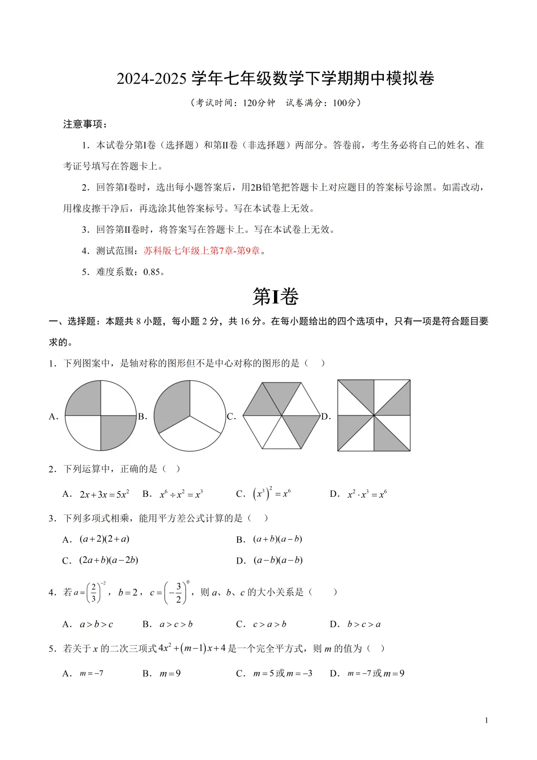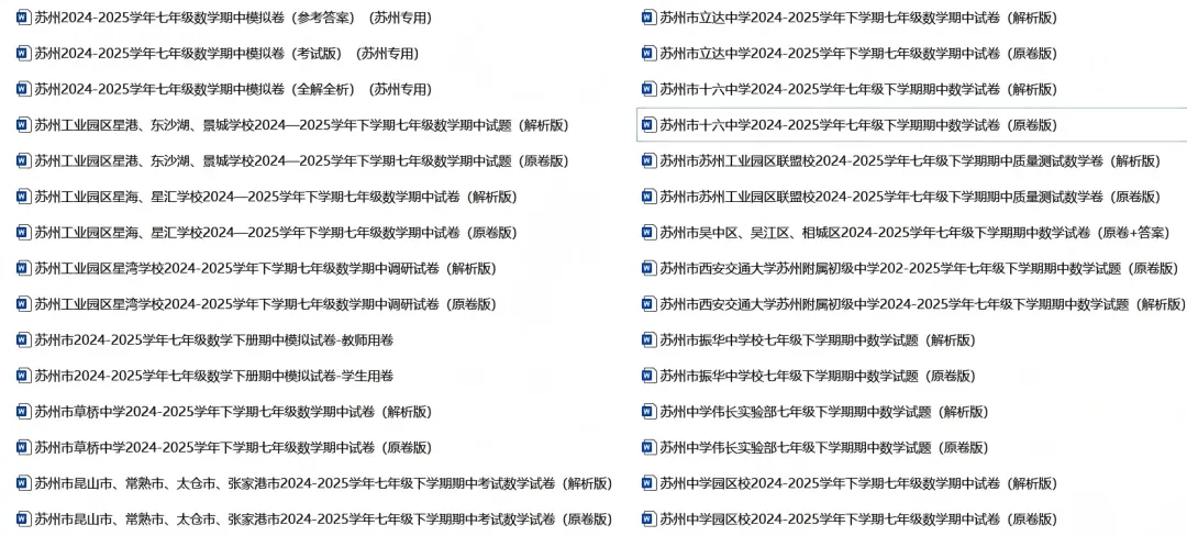 最全的苏州各学校7年级期中考试卷历年真题(数学)