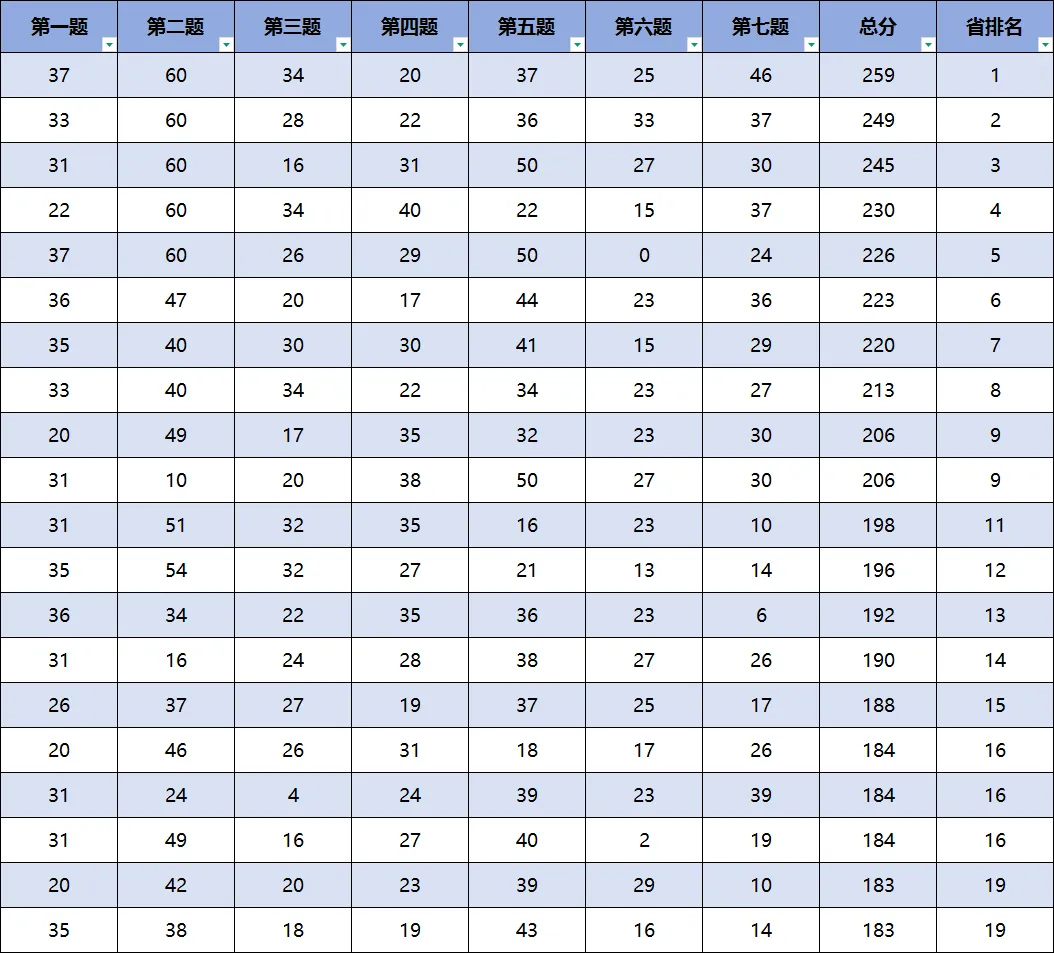 本次联考满分320分,北京最高分259分,平均分95.13分。