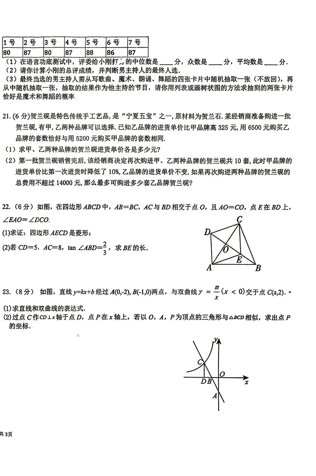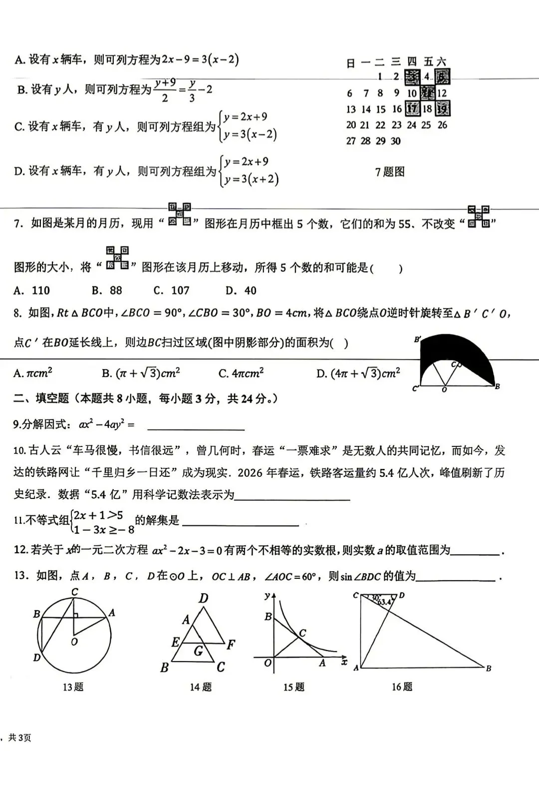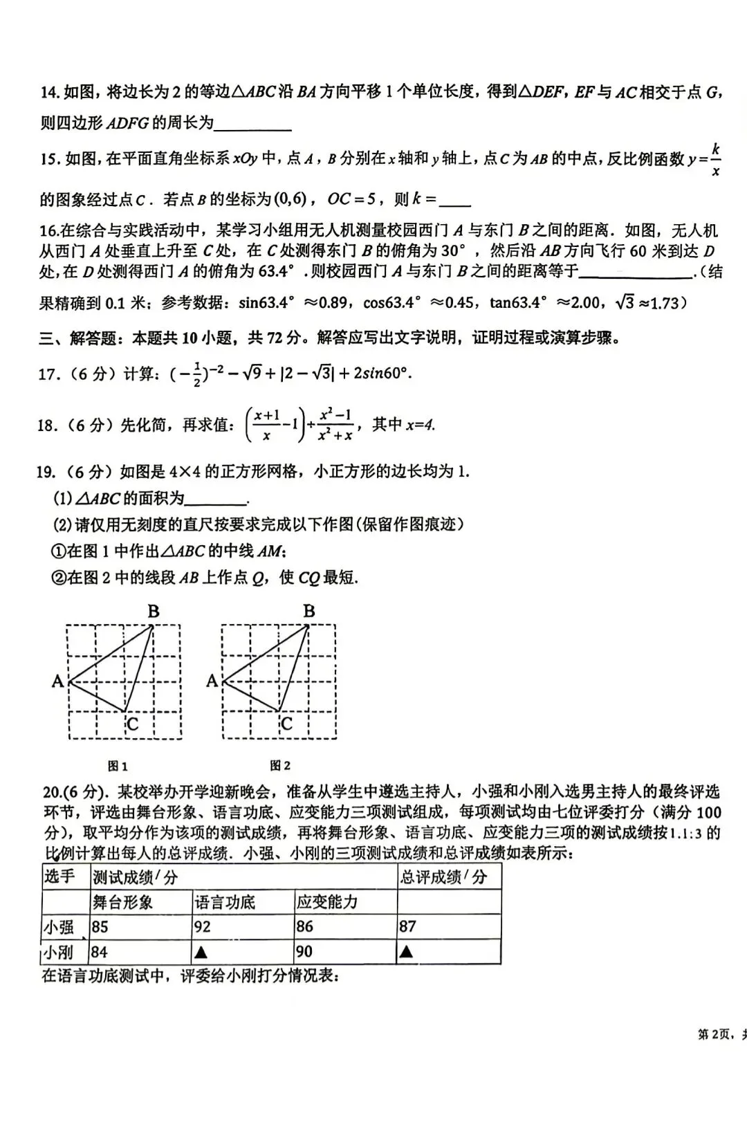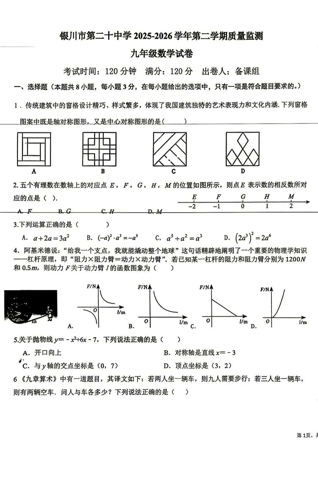 >2026年第二十中学九年级一模数学试卷