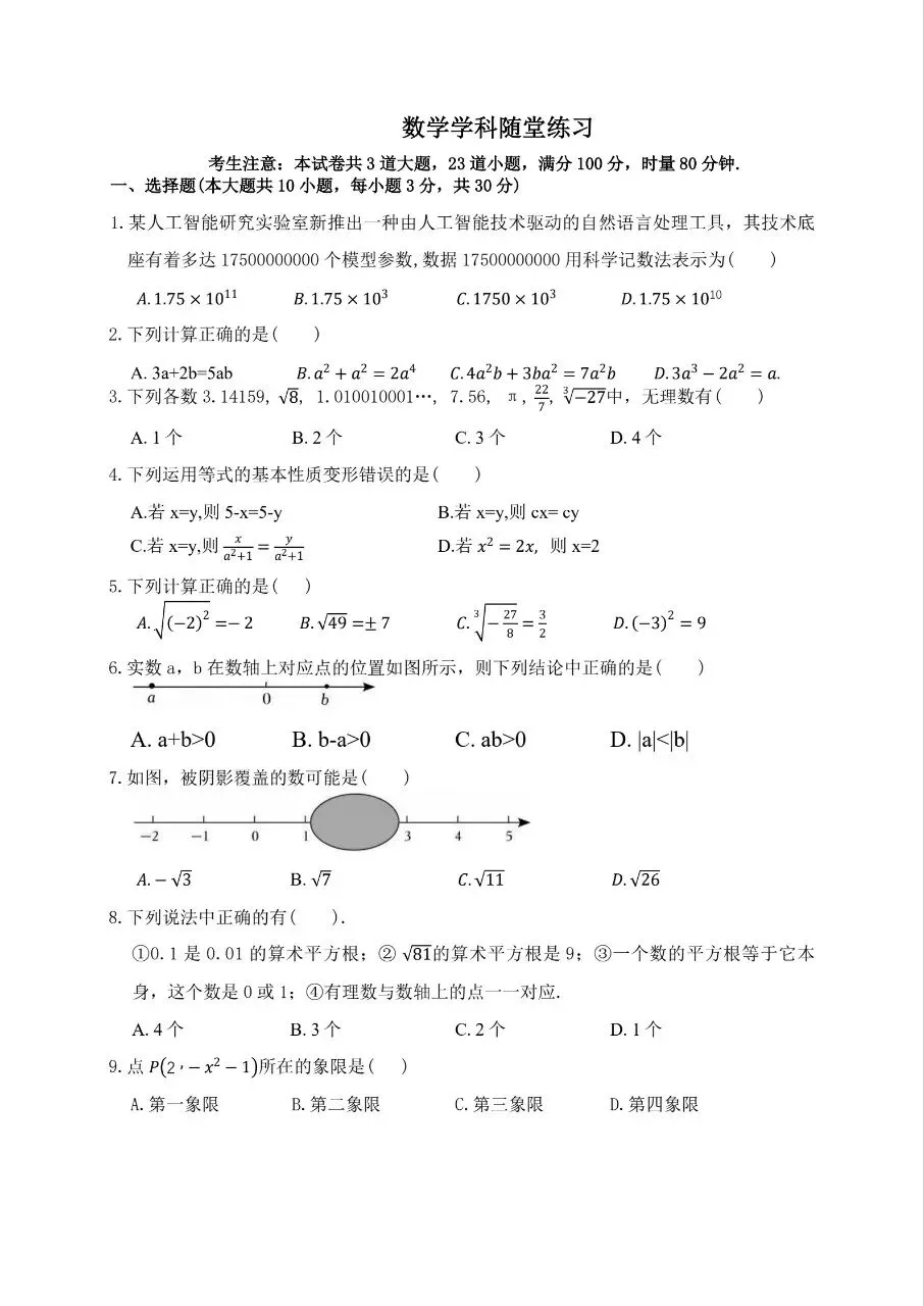 26.4.8济南市中区一模数学试卷原题速递!