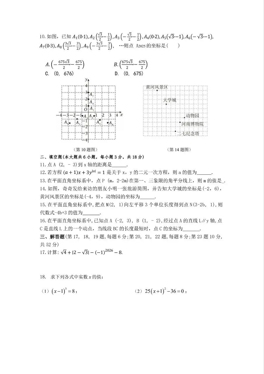 >2026年中雅七下第一次月考数学试卷