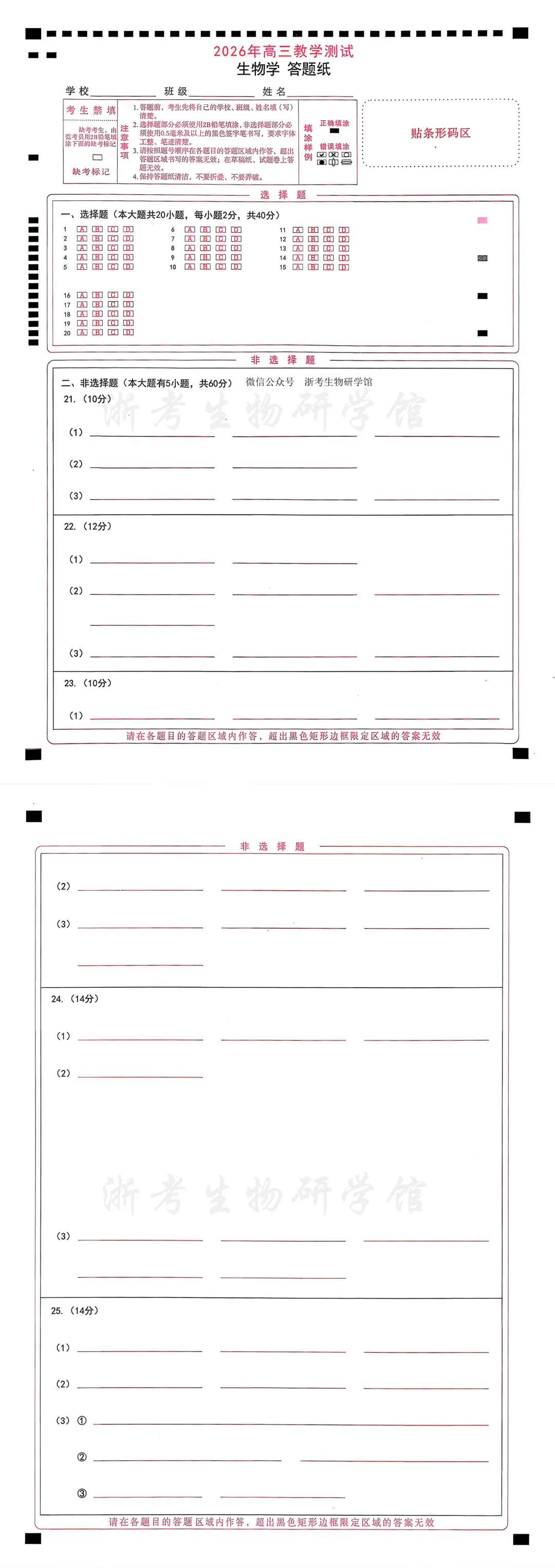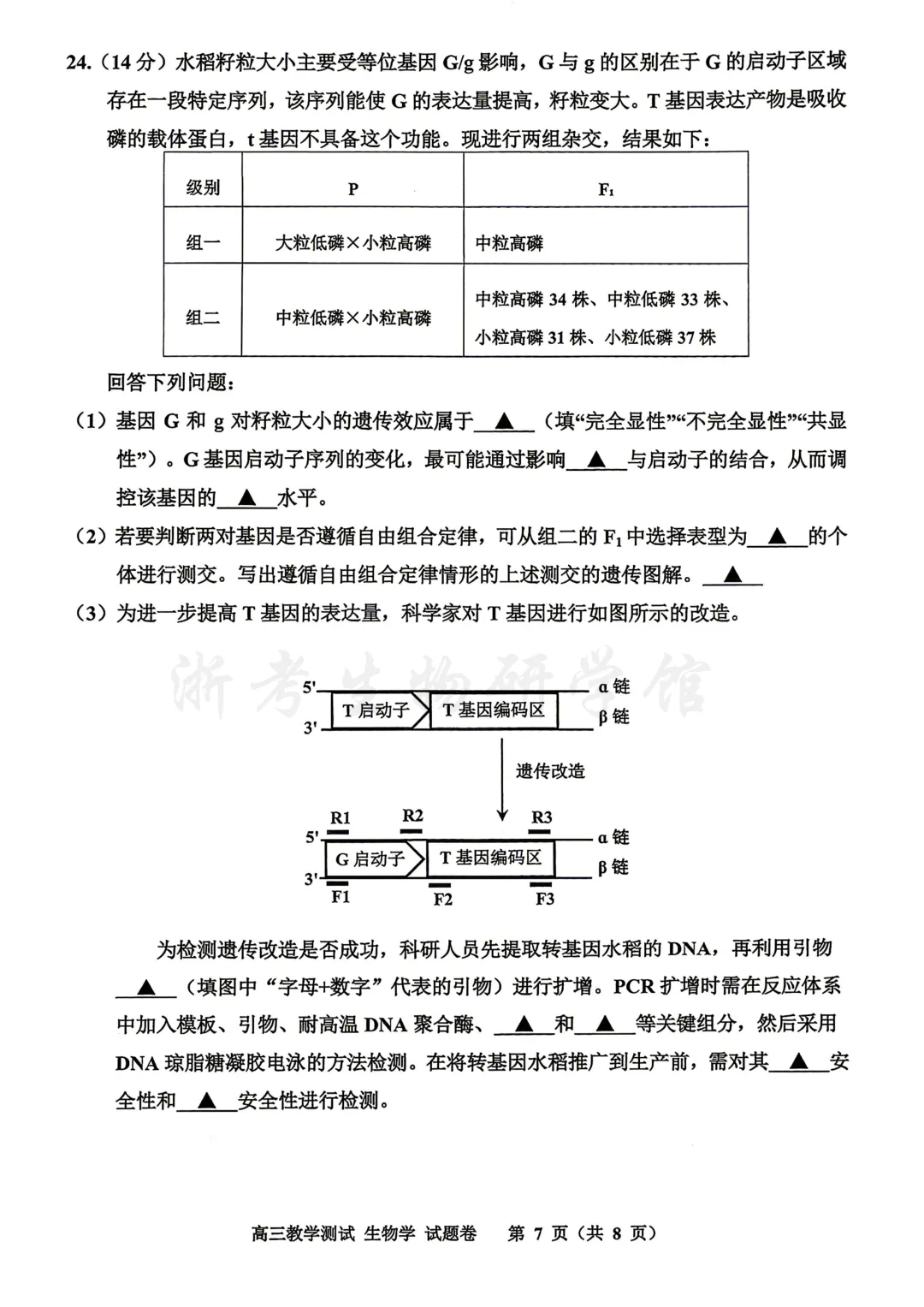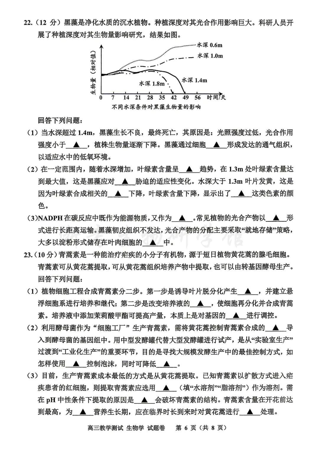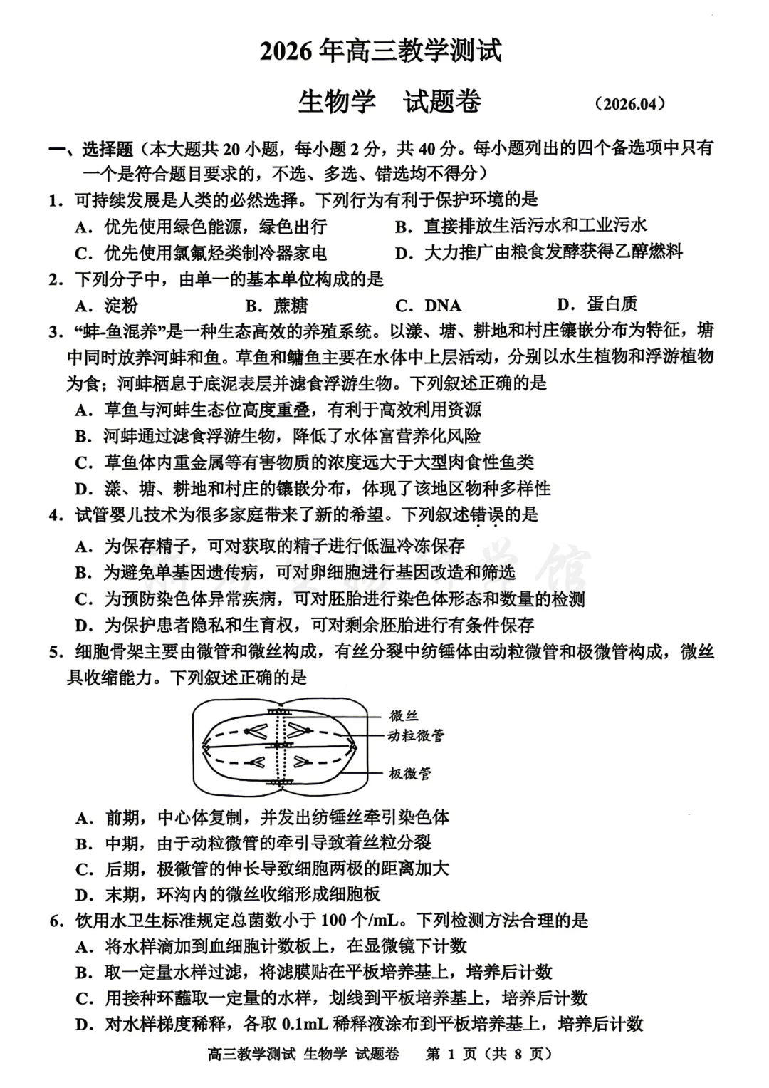 2604 浙江省嘉兴二模生物