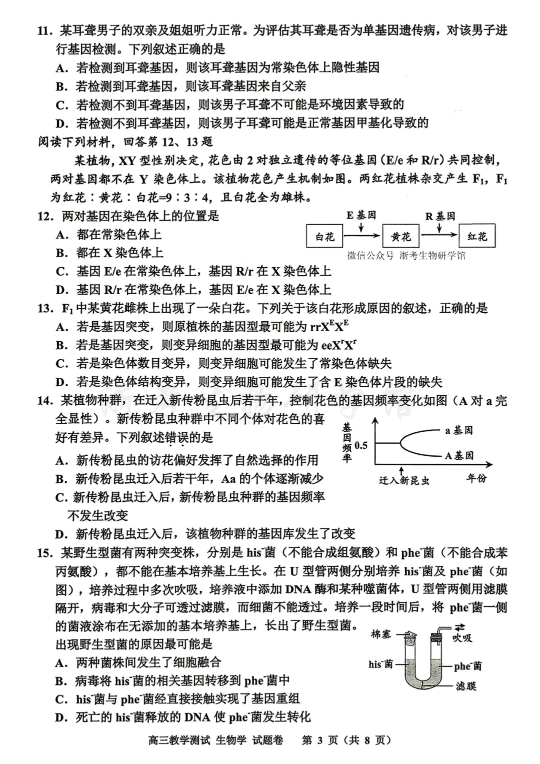 11.D 解析:A.若检测到耳聋基因,该基因不一定是常染色体隐性基因。双亲正常、儿子患病的单基因遗传病,也可能是X染色体隐性遗传,母亲为携带者,儿子从母亲获得致病X染色体,错误