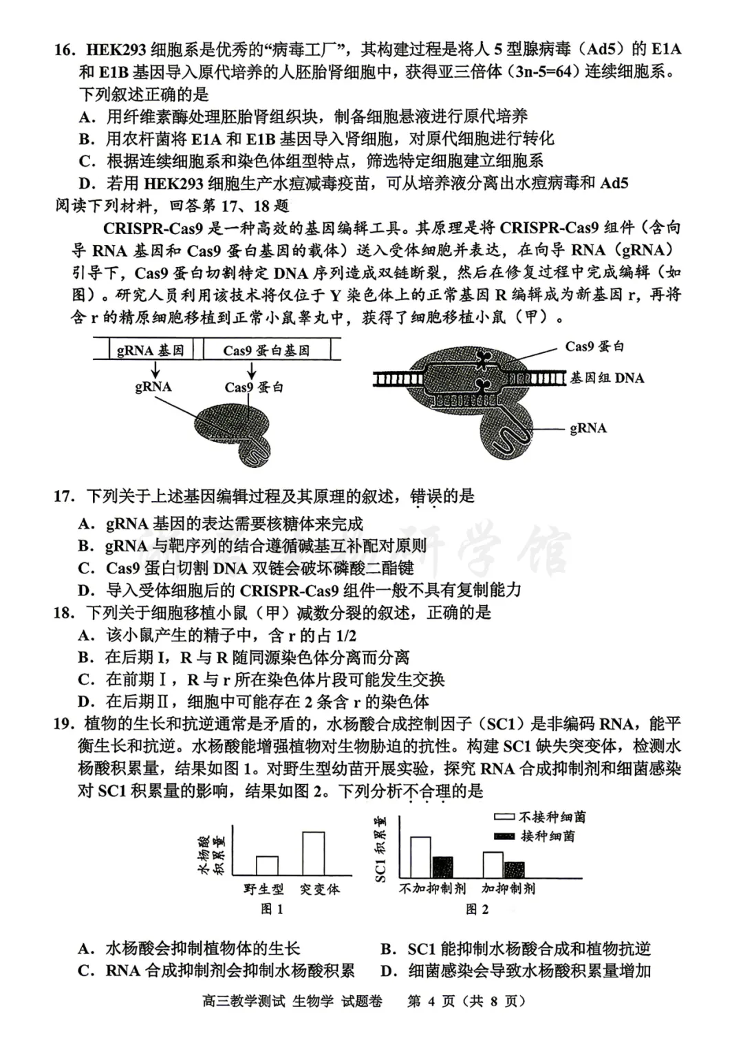 19.C 解析:A.因为生长和抗逆通常是矛盾的,题干可知水杨酸提高抗逆性,所以说水杨酸会抑制生长,正确