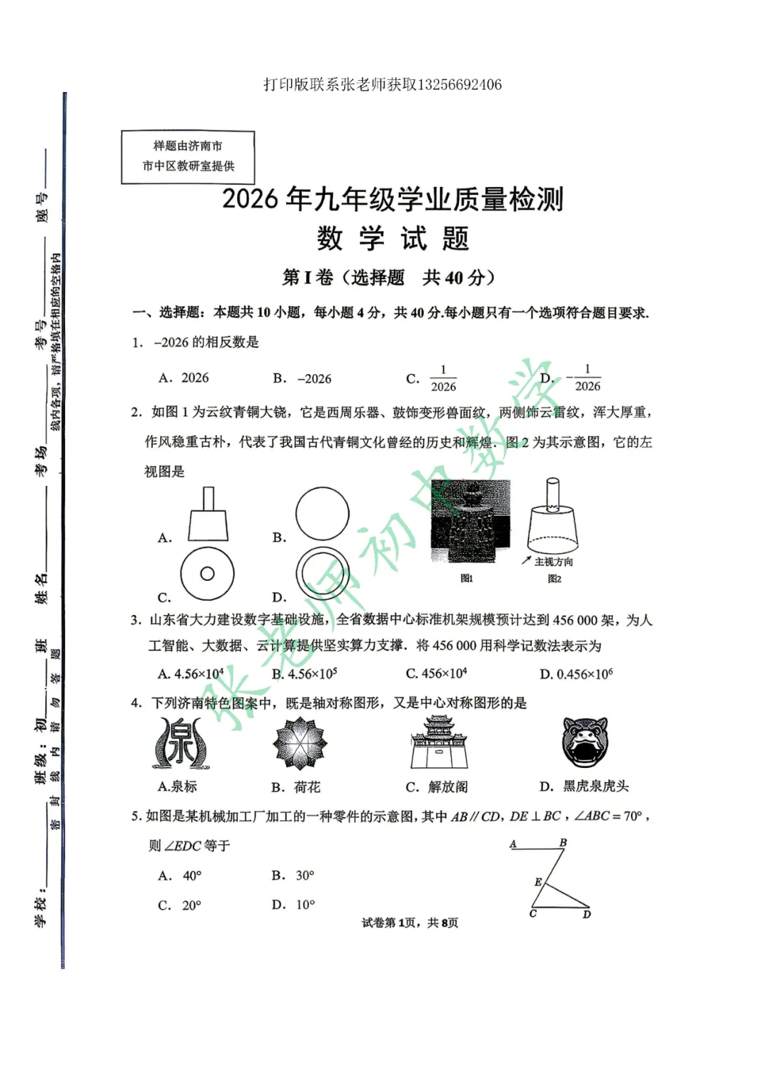 >【最新】2026.4市中区一模数学试卷及答案解析