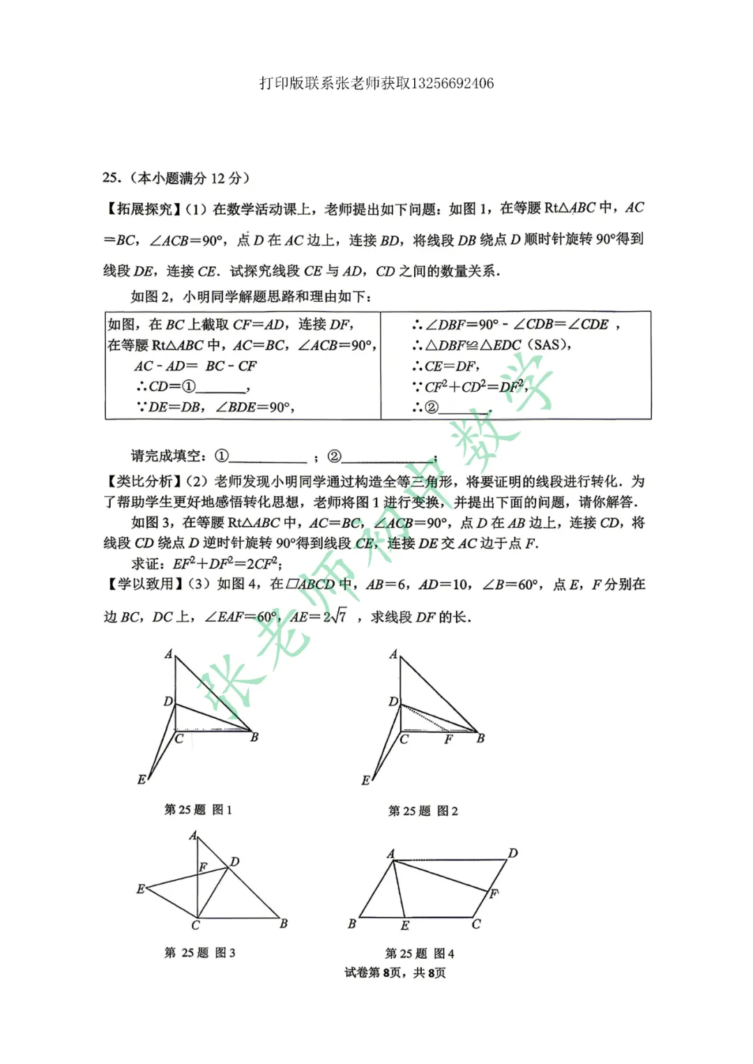 新鲜出炉!光明道中学九年级上月考卷(可下载),武清初三家长速领!