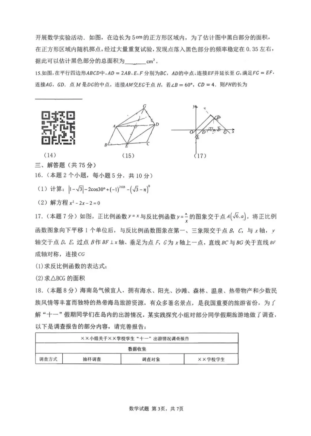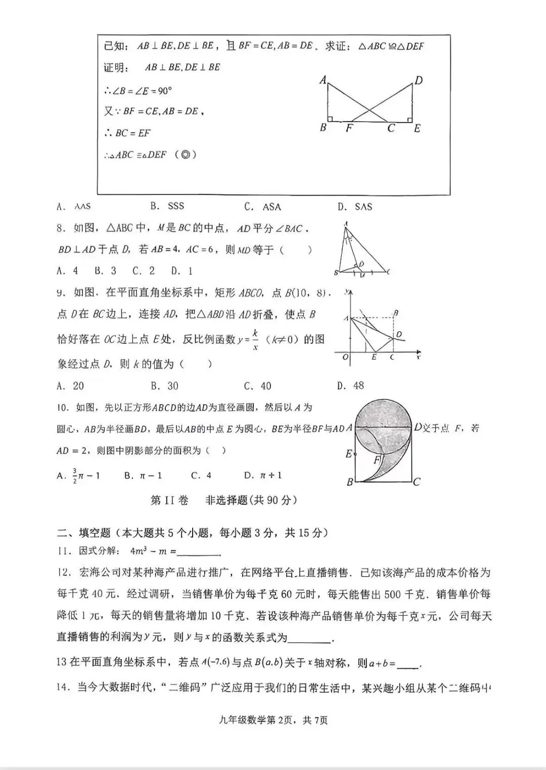 26.4.8济南市中区一模数学试卷原题速递!