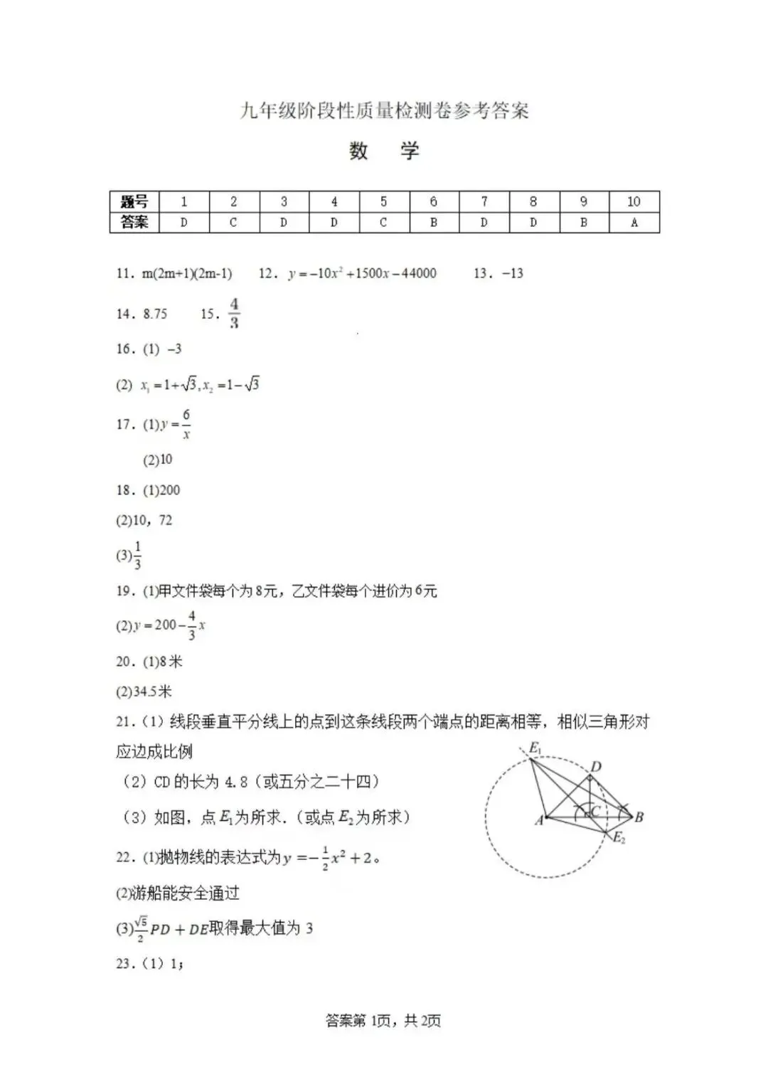 >26年九年级阶段性质量检数学试卷及答案