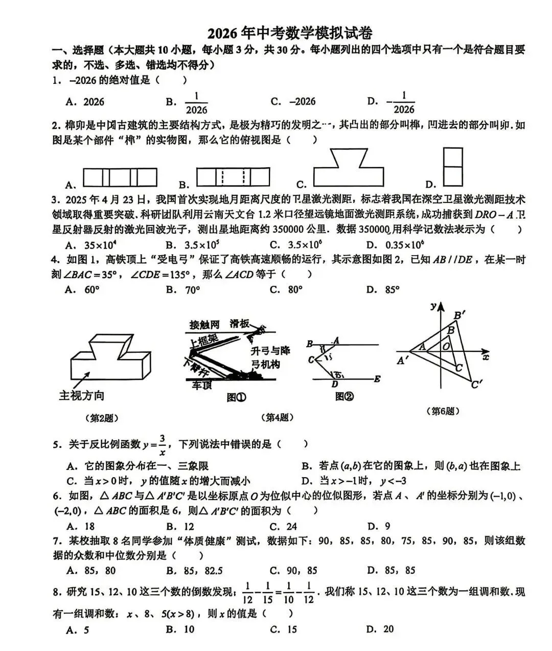 【2026浙江期末】嘉兴市期末数学试卷(七八九年级)