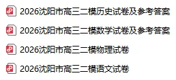 >2026沈阳高三二模试卷及参考答案!