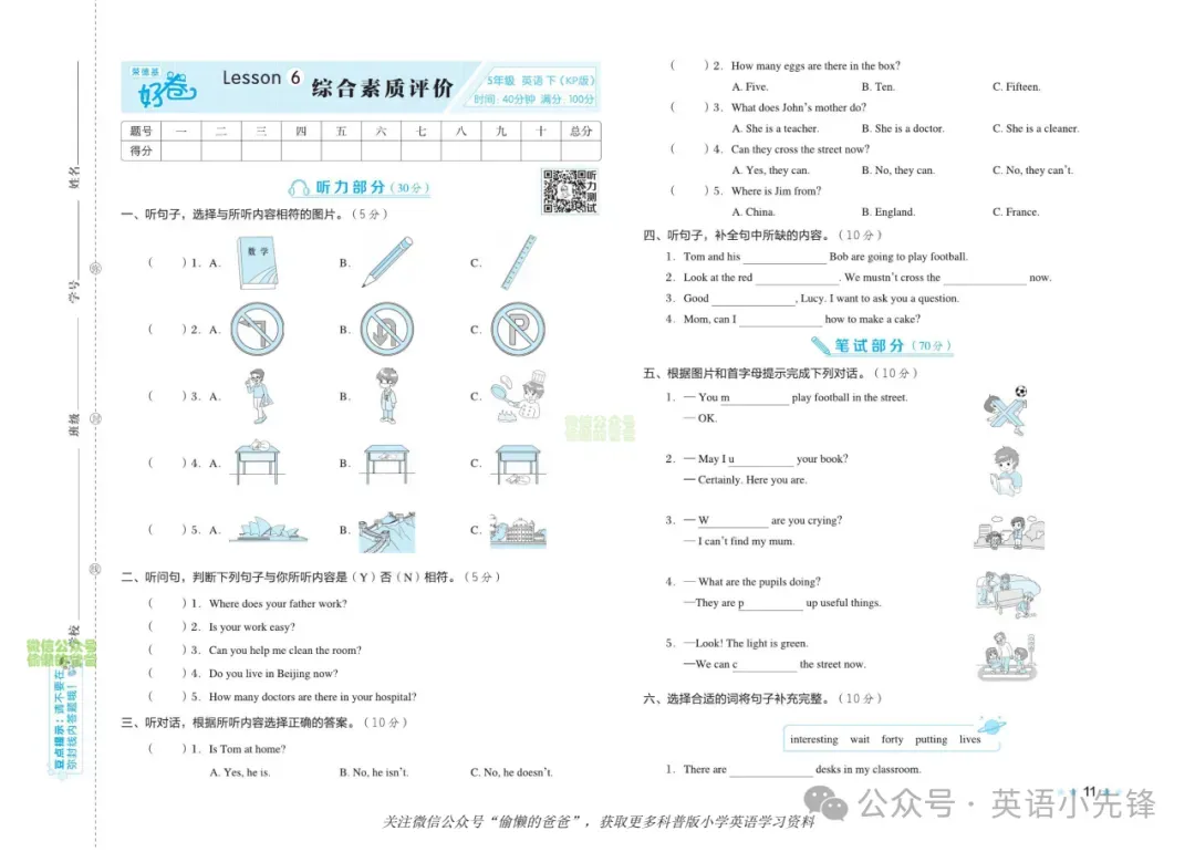 >【期中试卷】科普英语五年级下册期中试卷一 (可下载)