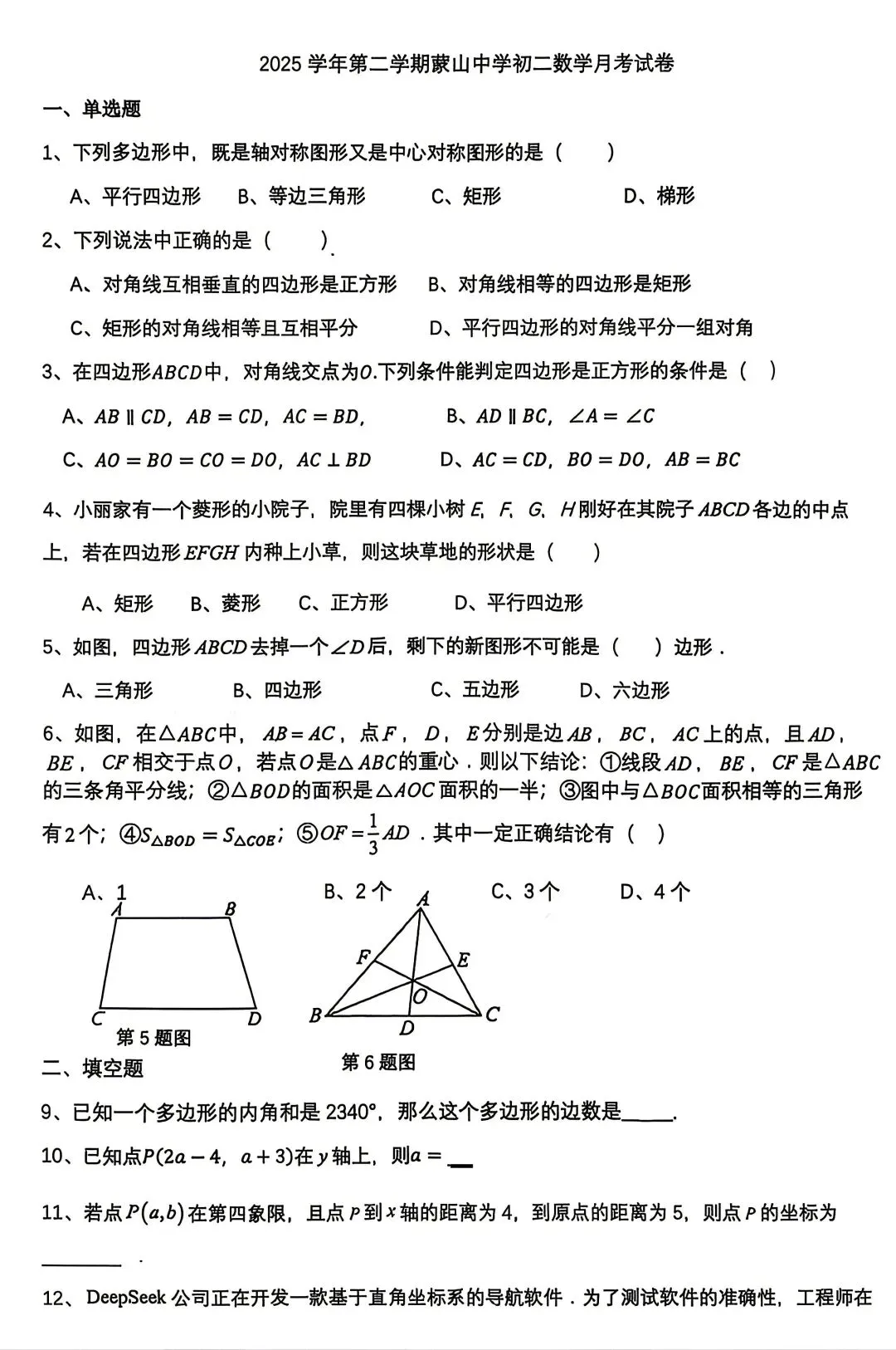 >蒙山中学八下数学月考试卷及答案(2026.3)
