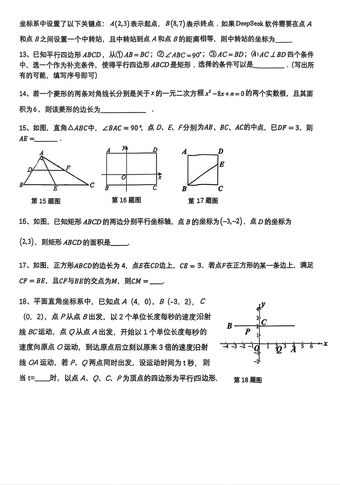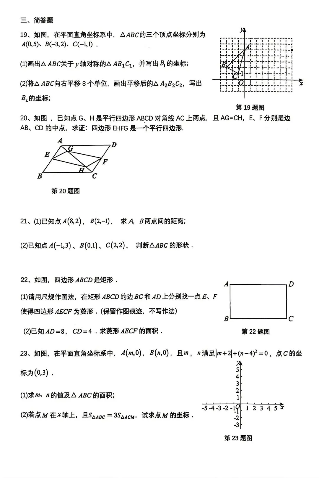刘老师点评:主要考察内容为四边形和坐标系,难度一般,适合复习用。
