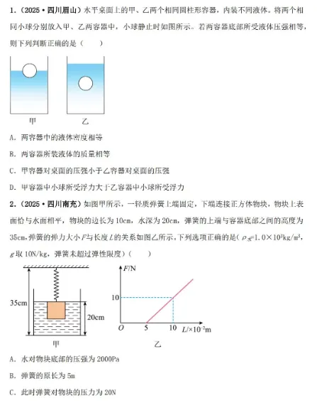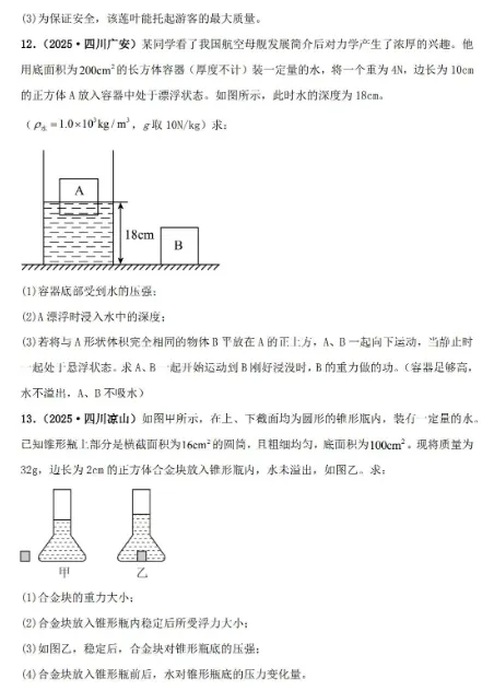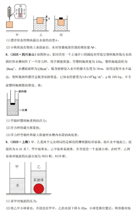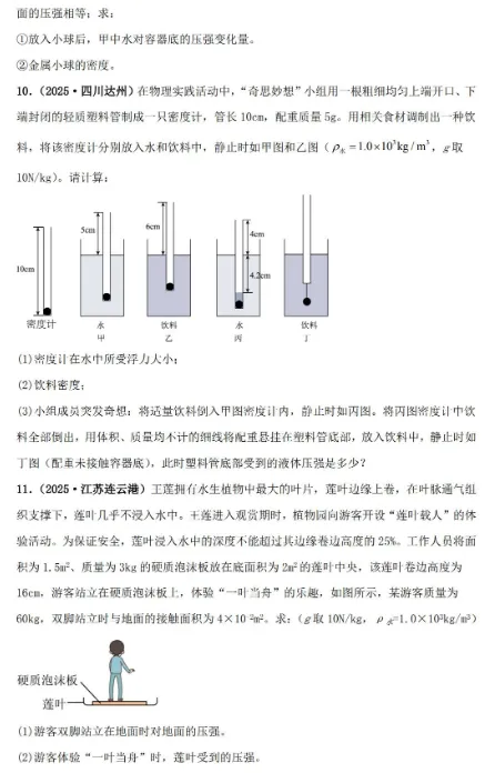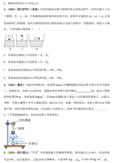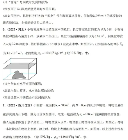 今天挑选的试卷是初中中考物理2025年真题专项综合检测卷 —— 压强浮力,全国通用。