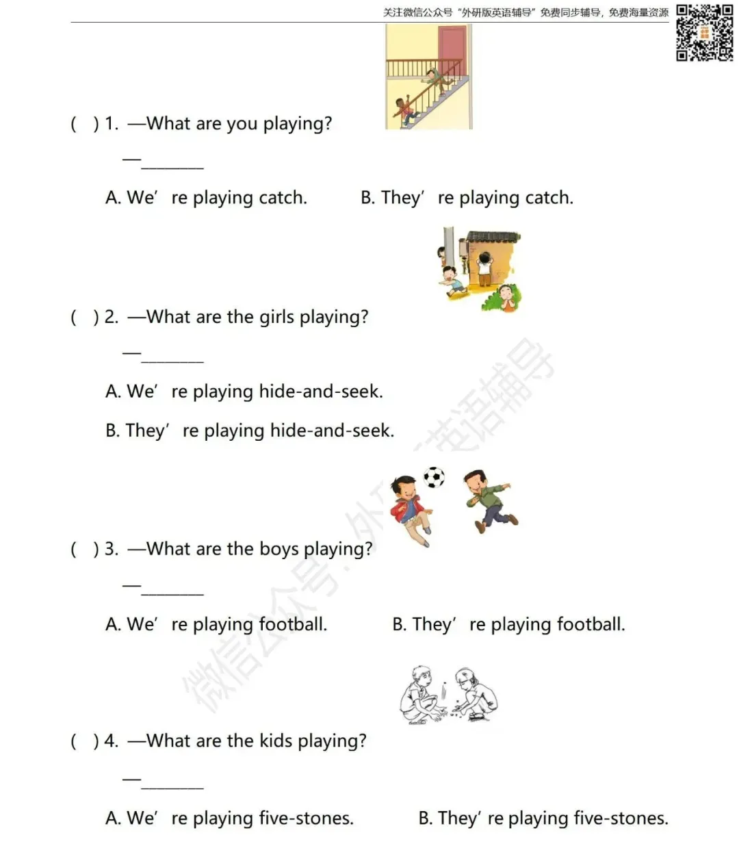 怎样获取打印版和答案?扫描下方二维码进入“外研版小学英语同步辅导”微信公众号点击公众号首页左下方键盘图标发送消息“一起点二年级试卷”即可获取打印版(不是在留言区哦)外研版1-6年级 课本点读 (一起点)外研版3-6年级课本点读(三起点)外研版3-6年级课本口语同步练