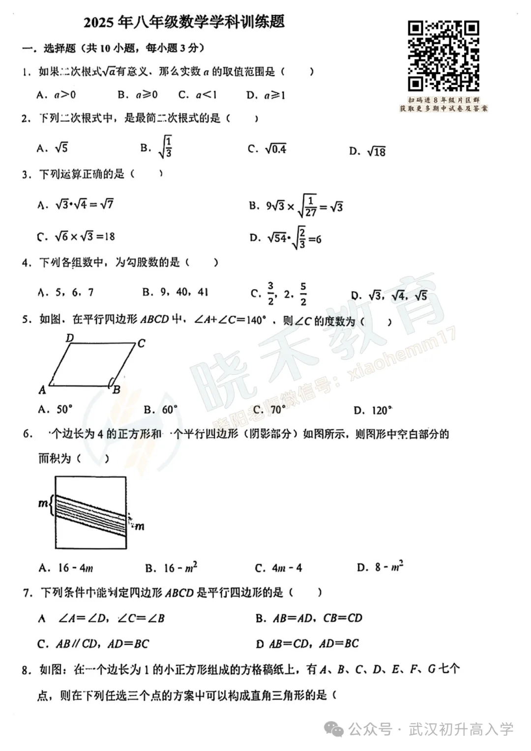 >【八年级武昌拼搏联盟数学期中试卷】2024-2025下学期
