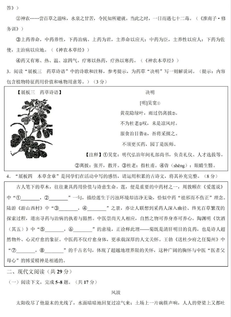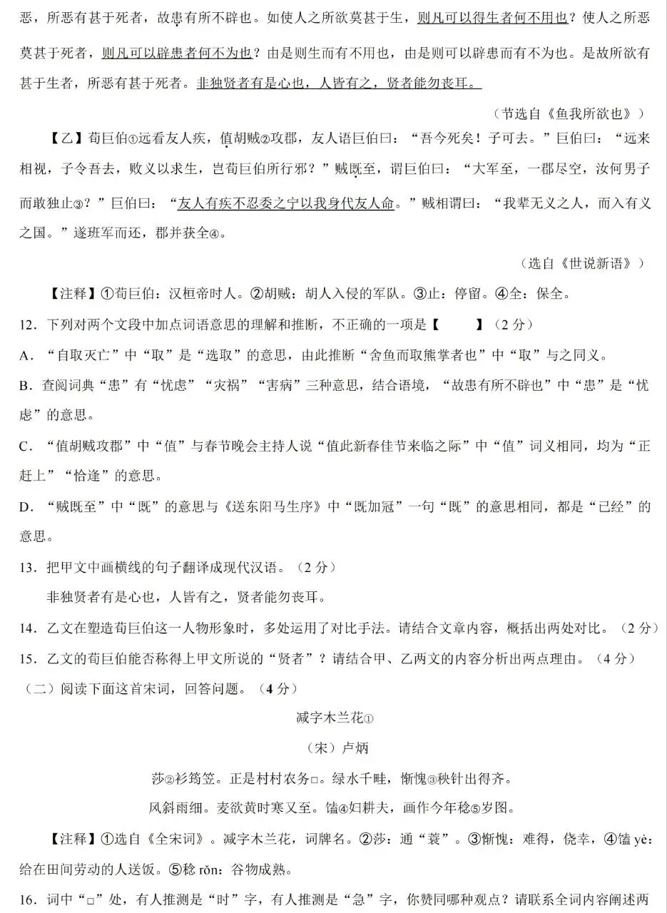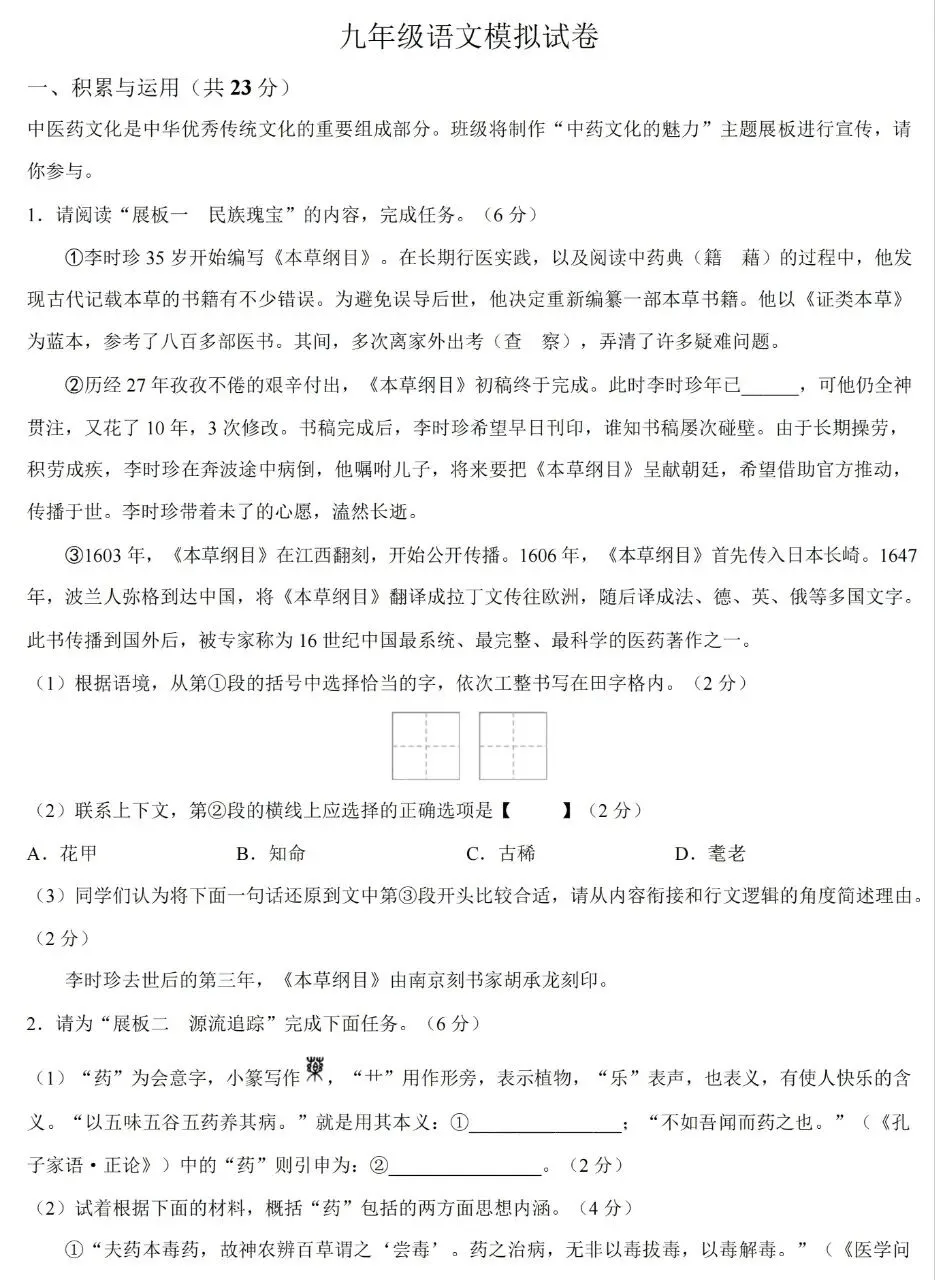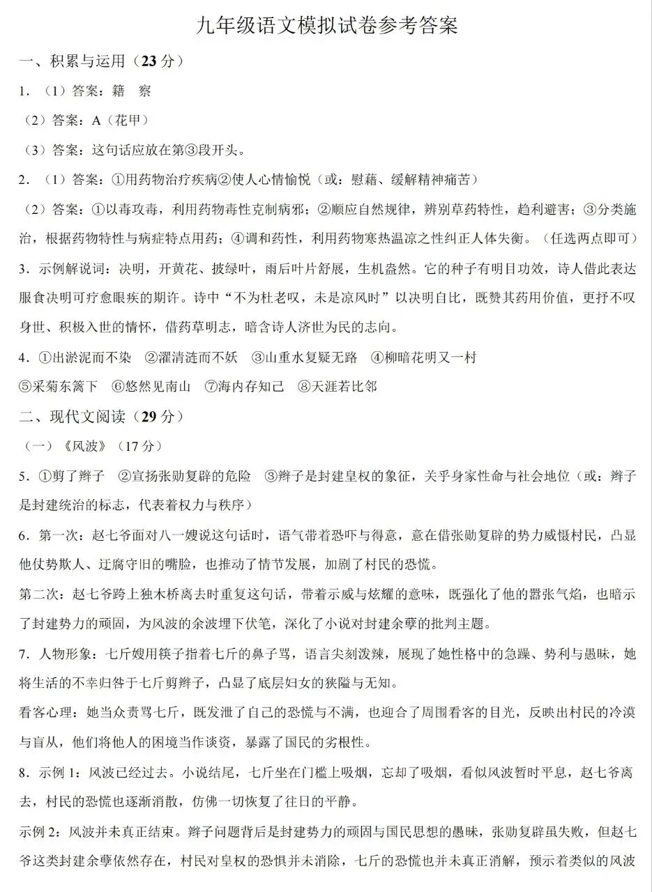 郑州枫杨外国语九年级语文模拟试卷(含答案)