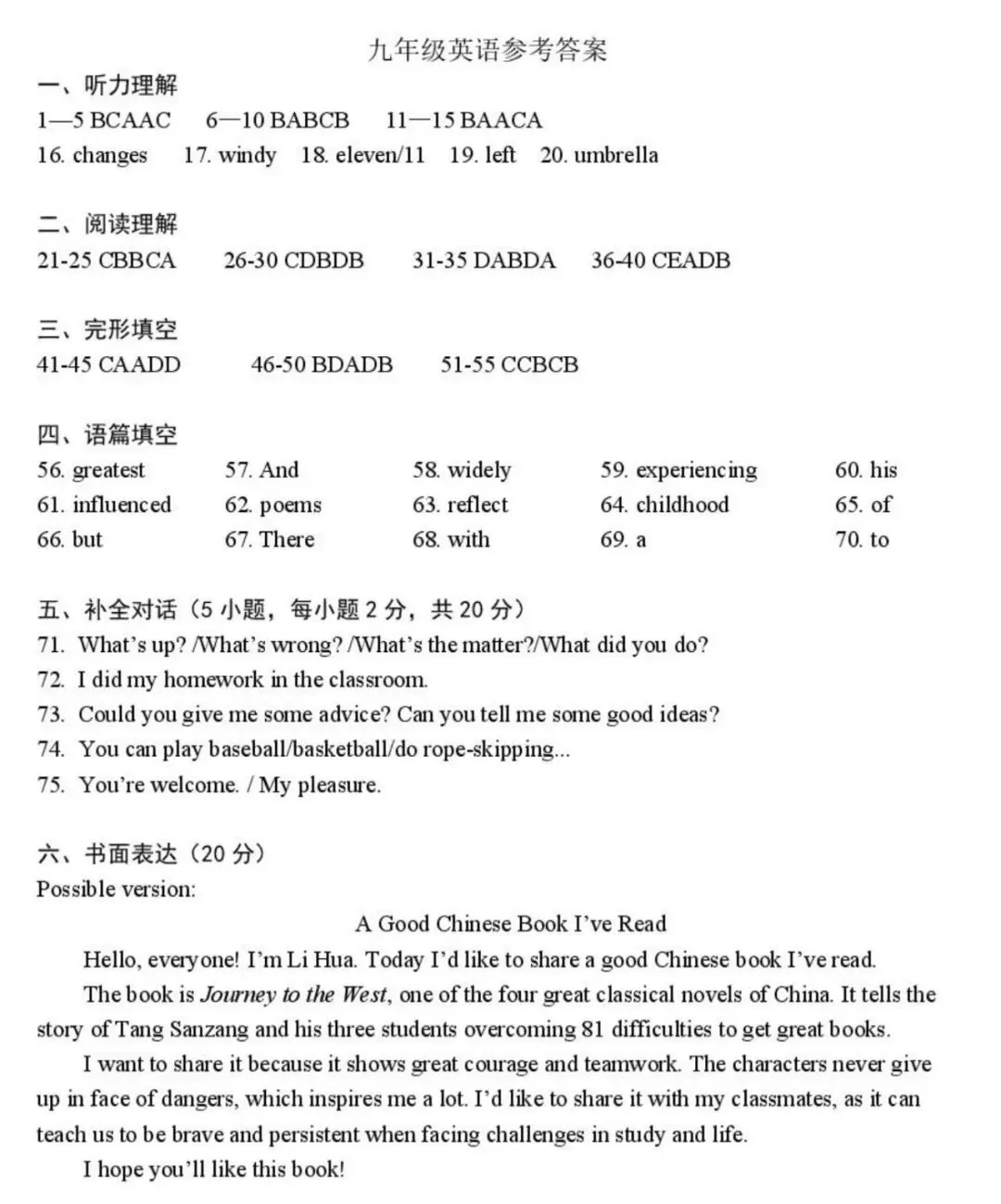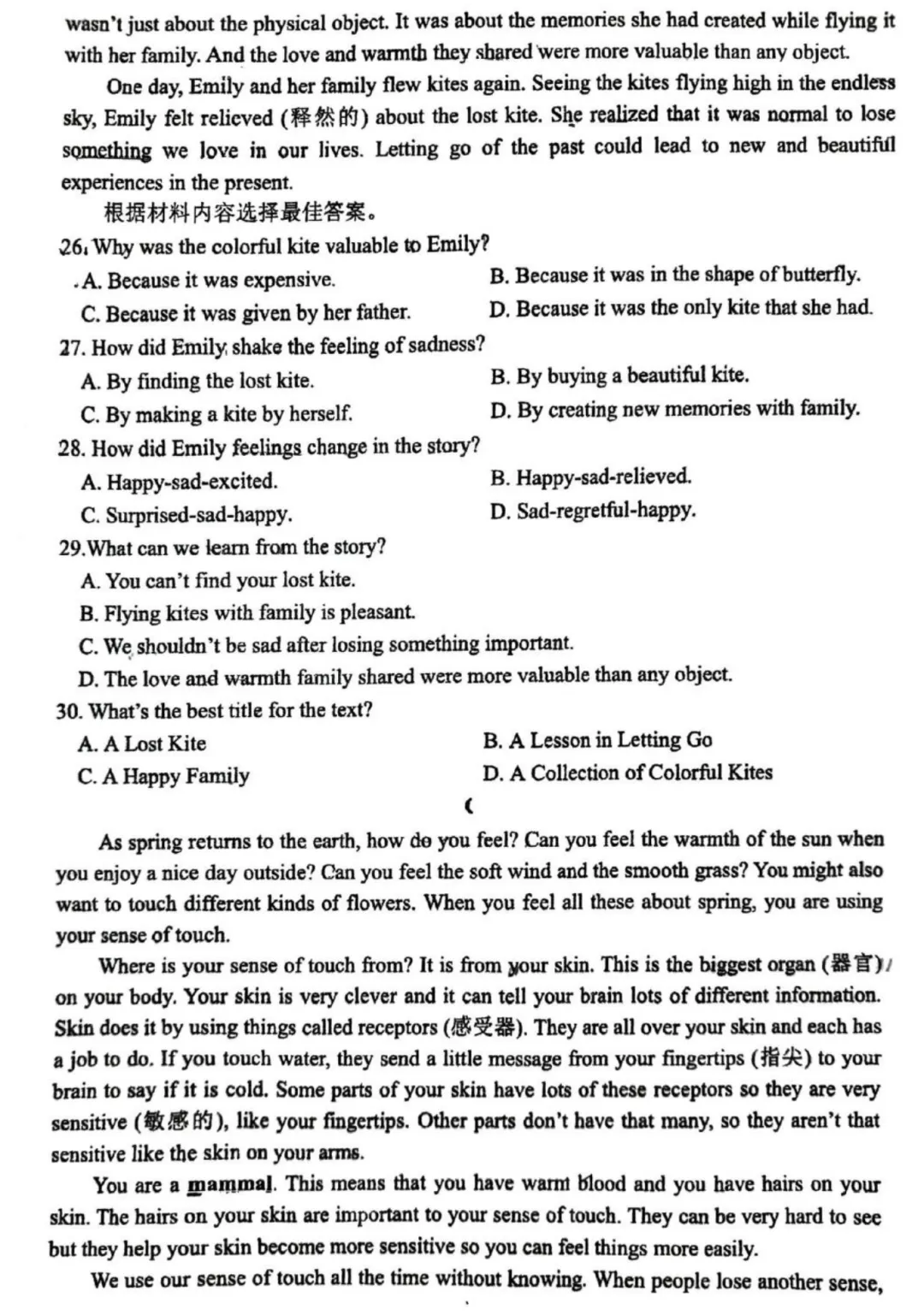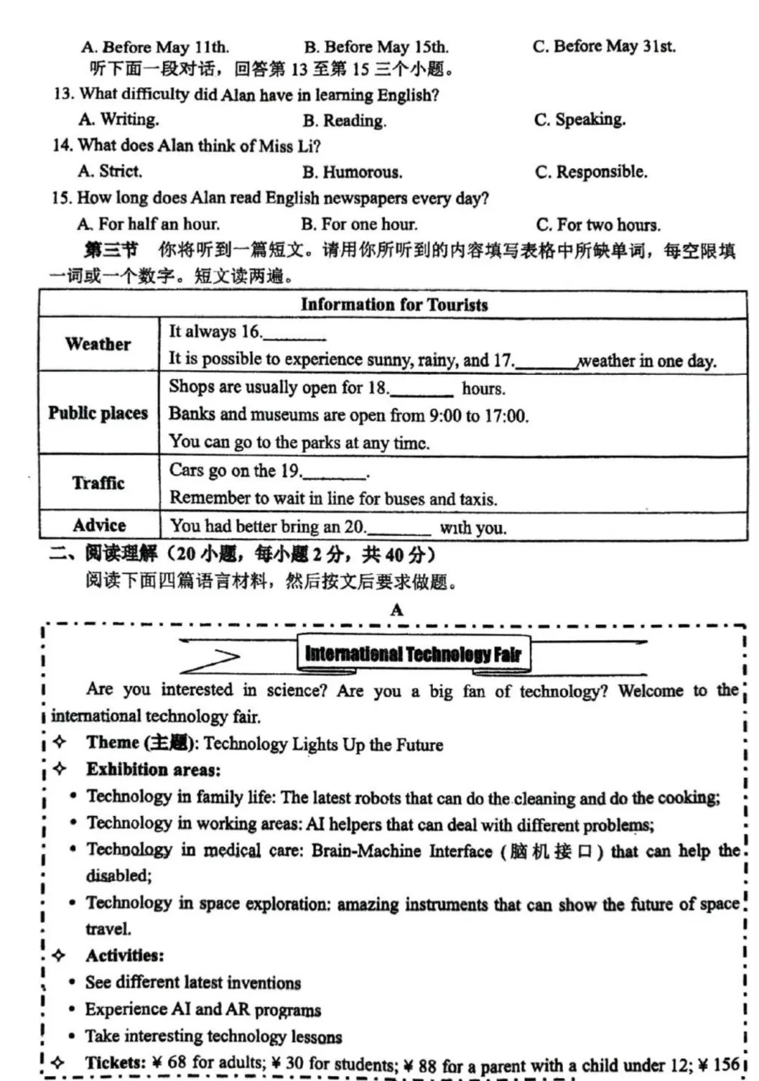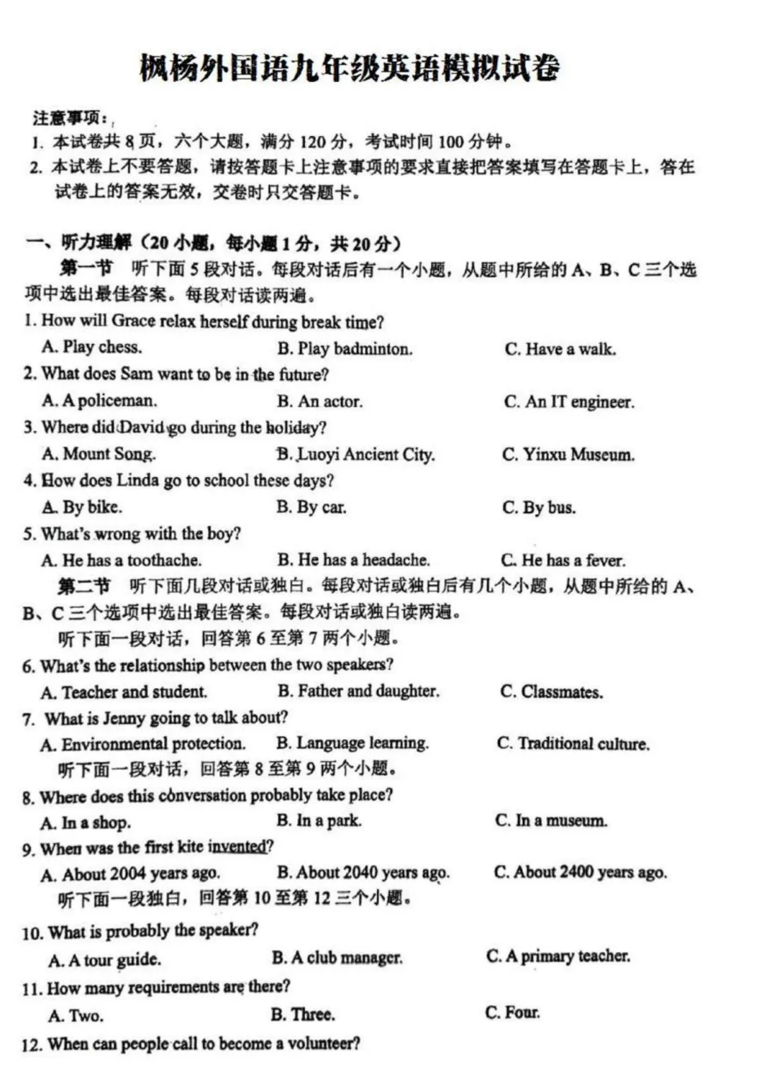 初中试卷: