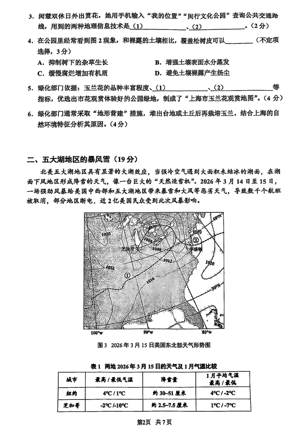>2026闵行地理二模试卷