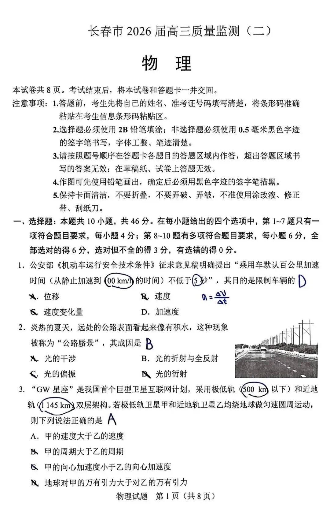 2025-2026长春二模物理试卷及答案