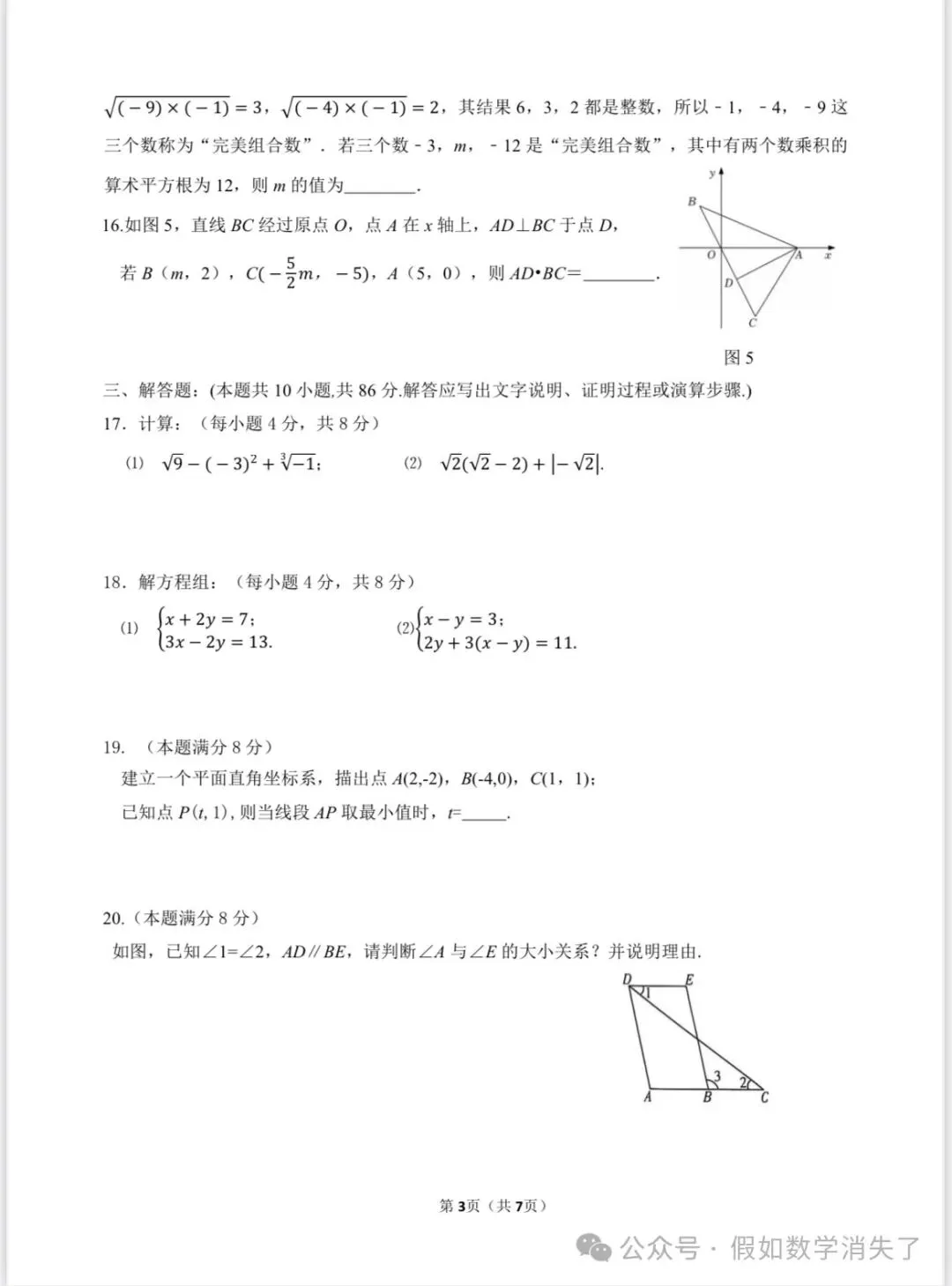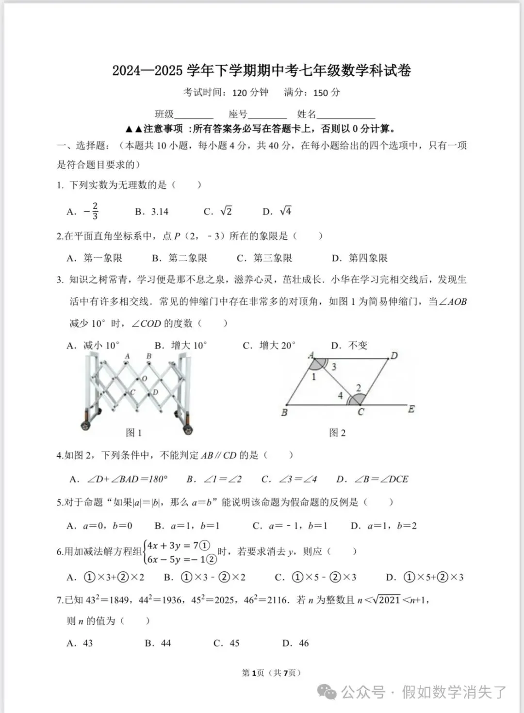 槟榔初一数学期中考试卷