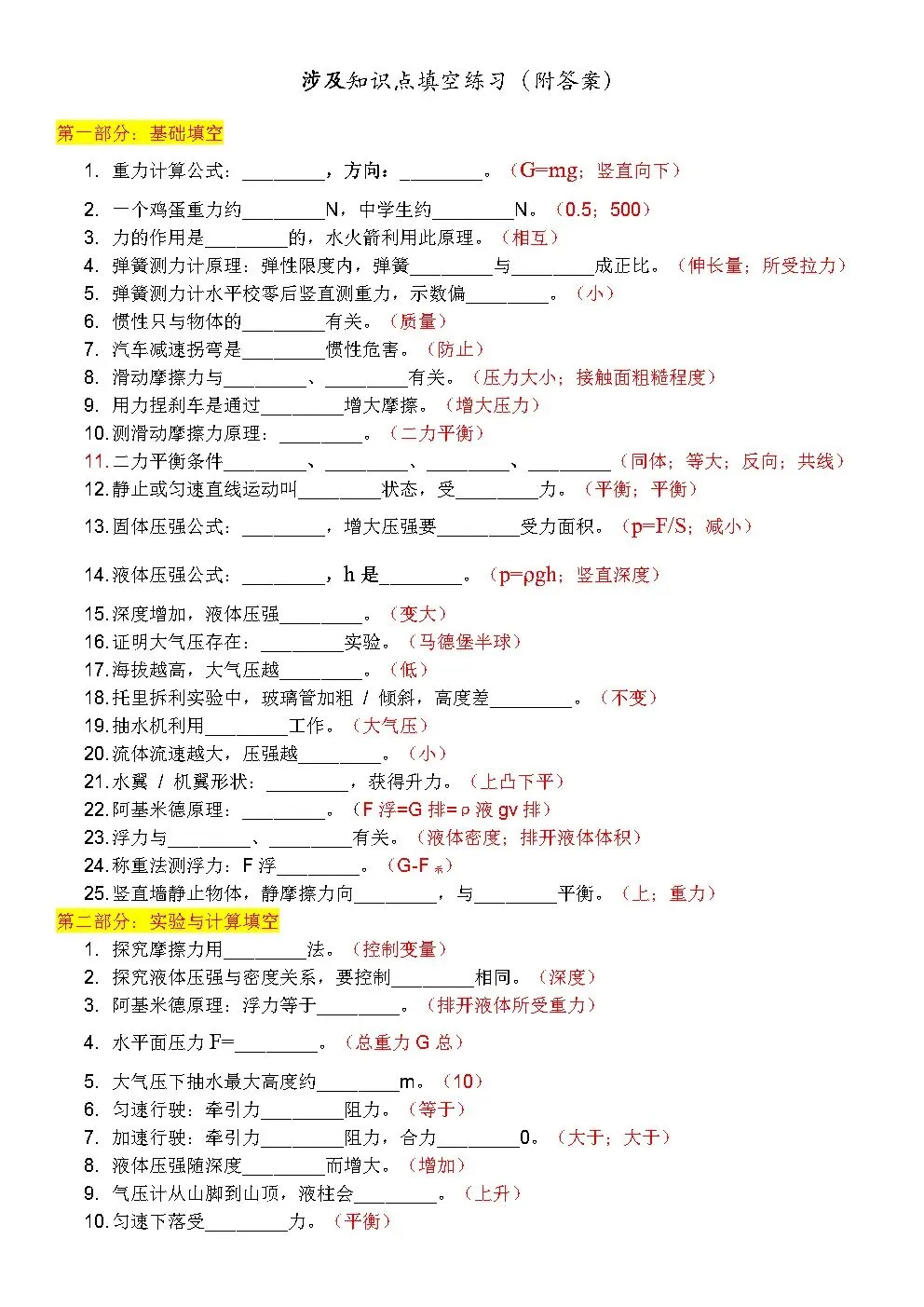 亲爱的朋友们,今天要和大家分享的是2025年物理深高级中学八下期中考试+答案+知识点总结。