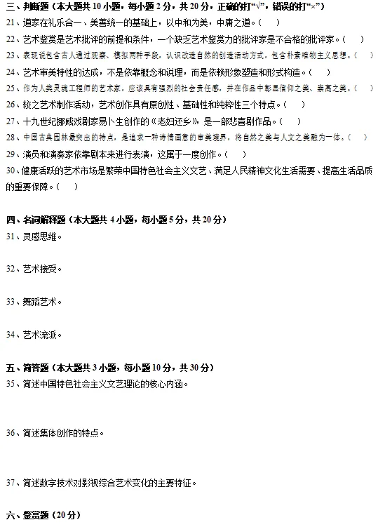 2026年江西专升本考试《艺术概论》真题(回忆版)