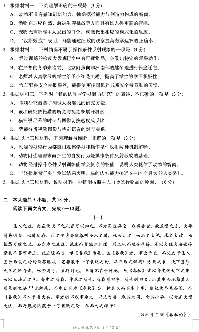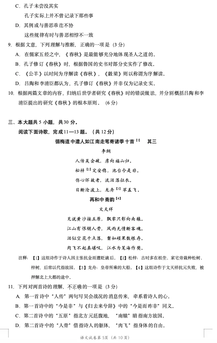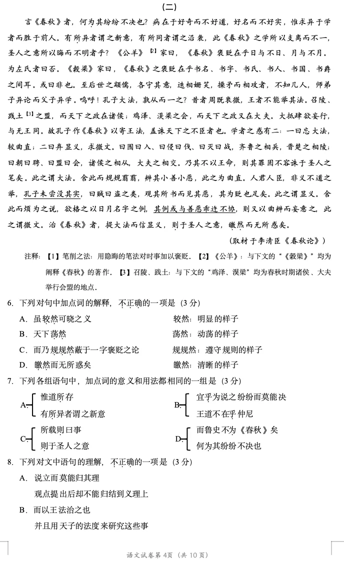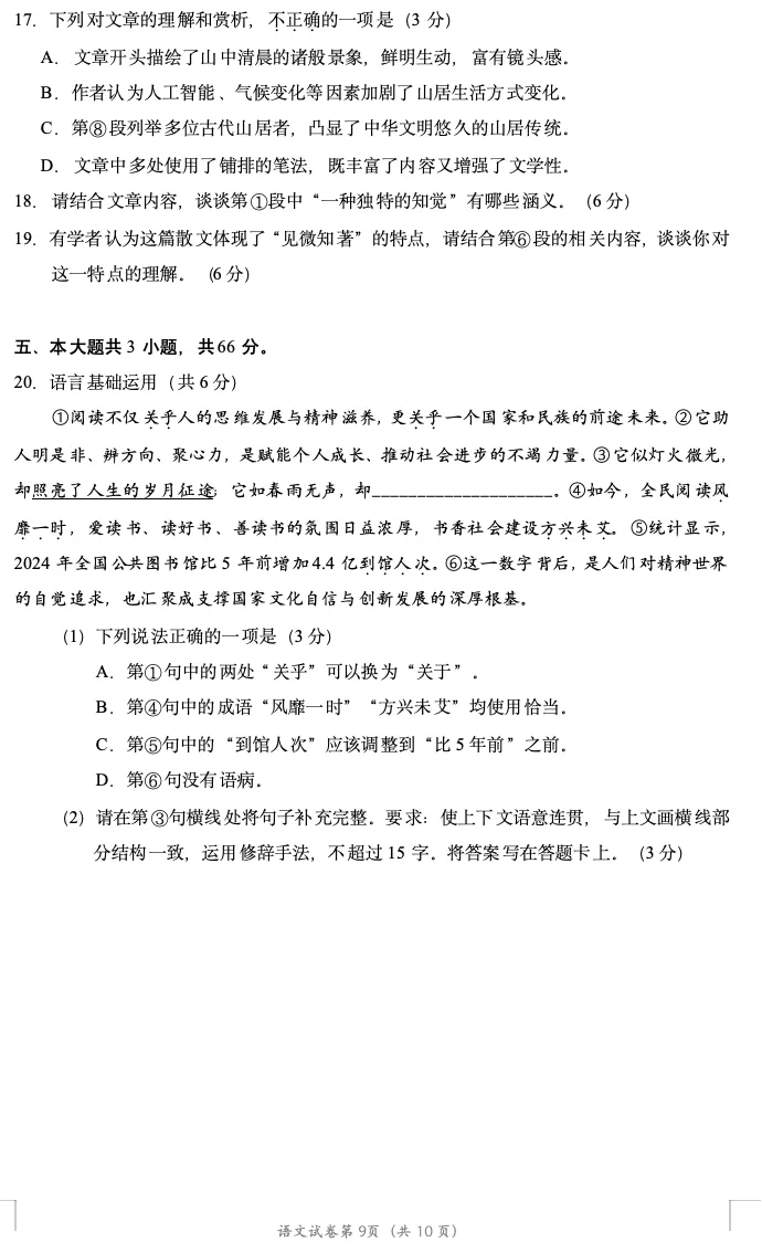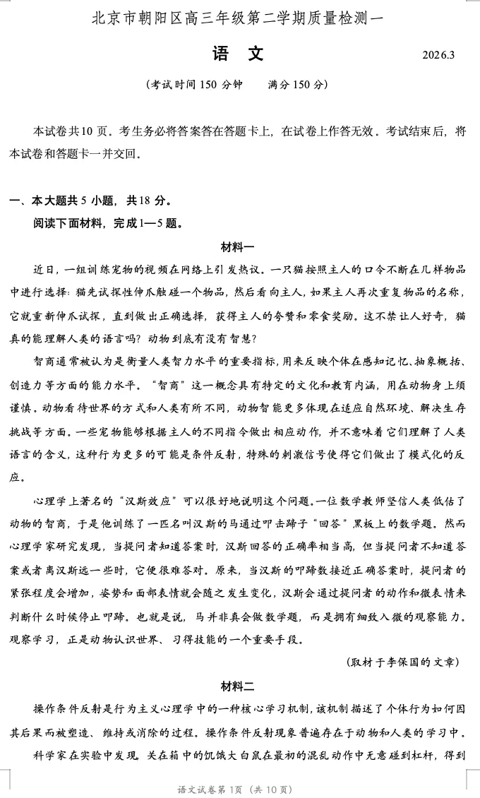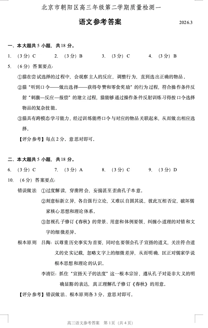 >2026年北京高考高三一模朝阳语文试卷及官方答案