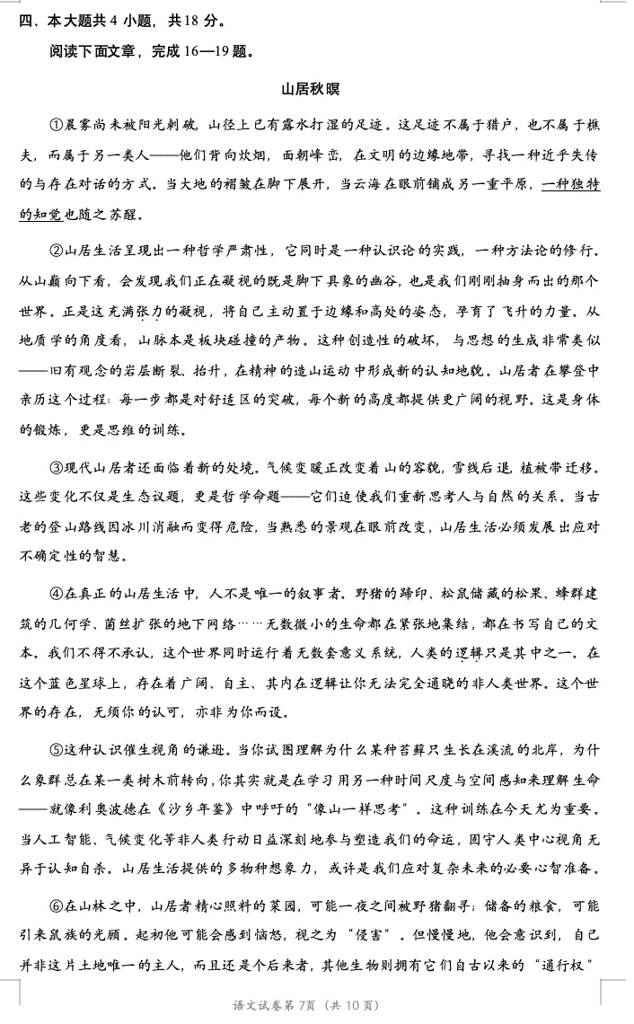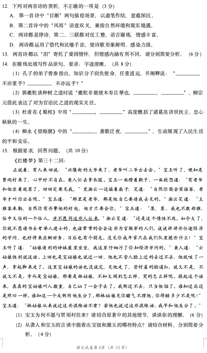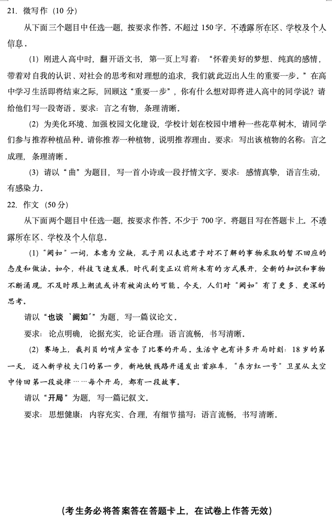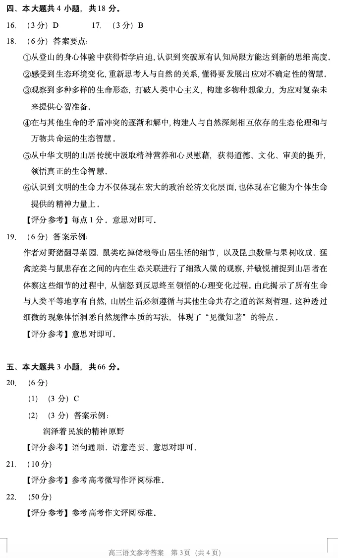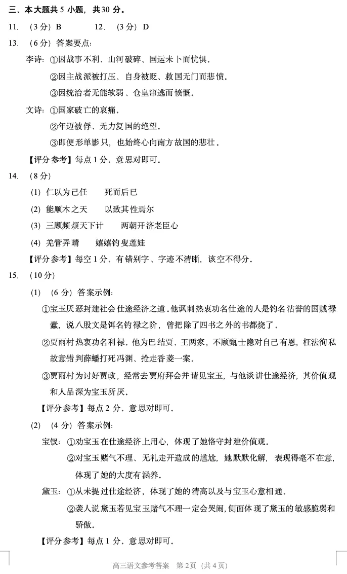 2026年北京高考高三一模延庆语文试卷及官方答案