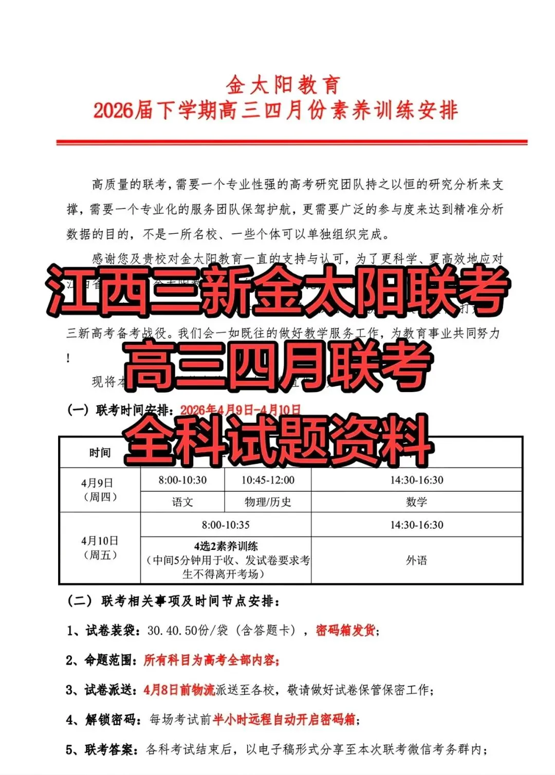 >【试卷+解析】2026年江西省金太阳高三4月联考素养训练全科汇总!