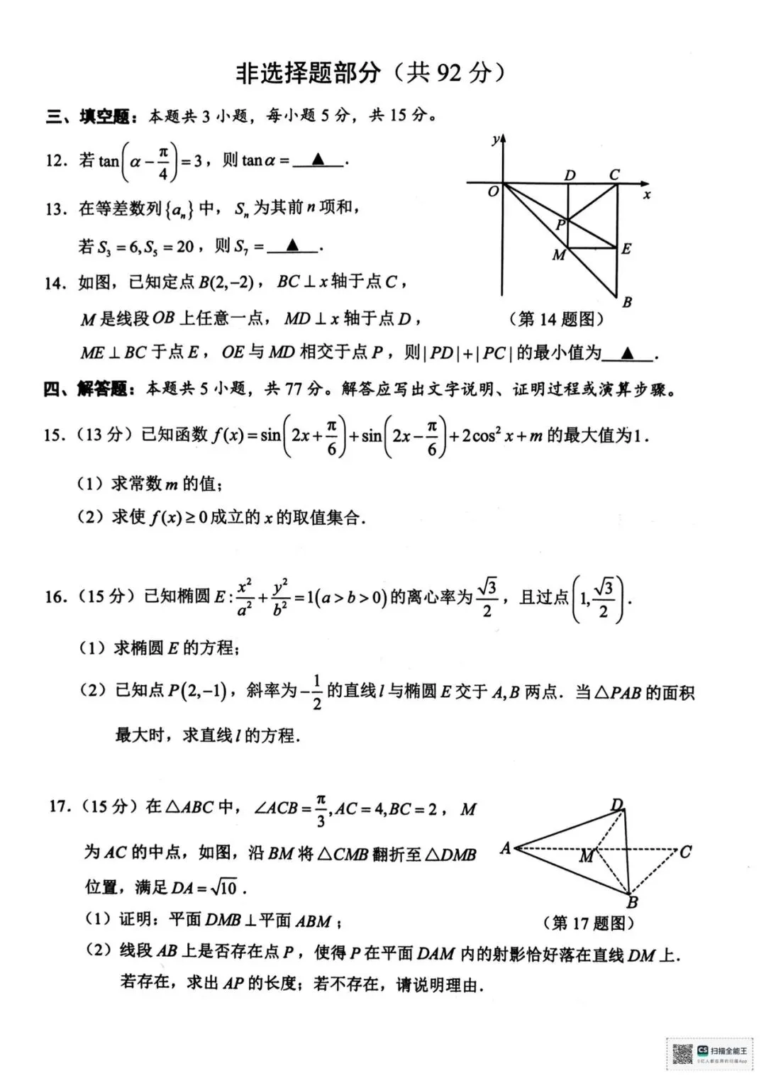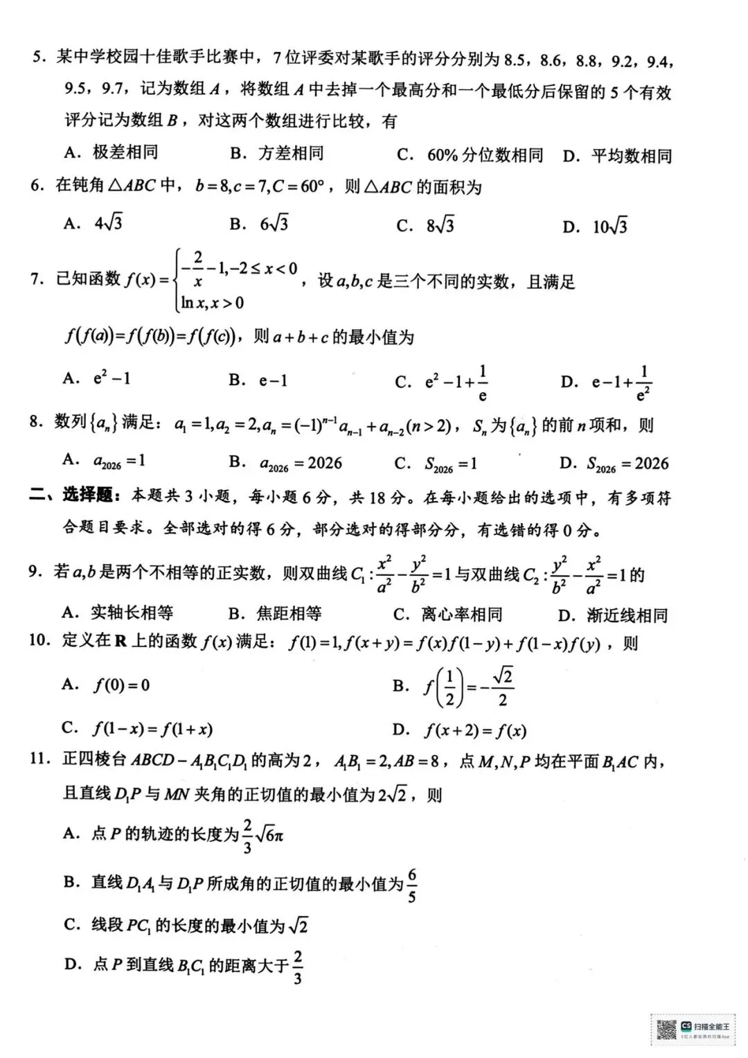 试卷分享0028:2026届上海松江区高三二模 数学试卷(答案+难题详解)