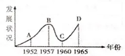 16.仔细观察建国后我国国民经济发展状况示意图,指出从C到D上升的主要原因是( )