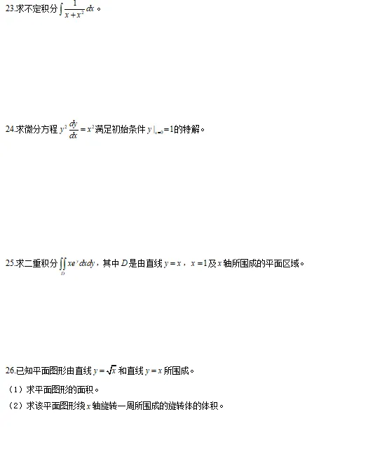 2026年江西专升本考试《高等数学》真题(回忆版)